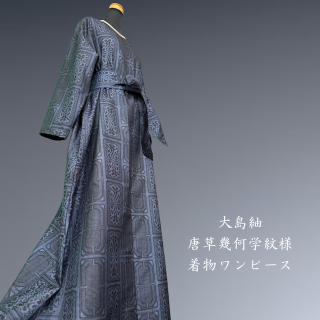 大島紬 唐草幾何学紋様 着物ワンピース ※写真は撮影環境や角度により色味が異なって見える場合がございますが、 1枚目の写真の色味が実物に最も近いお色味となっております。 こちらの着物ワンピースは、奄美大島紬の繊細な織りに、唐草と幾何学文様を重ねた、静かな存在感を放つ一着です。 大島紬ならではのしなやかな風合いと、光の加減で表情を変える奥深い色合い。 落ち着いたトーンの中に、柄の立体感が浮かび上がり、上品で知的な印象を与えます。 文様として描かれている唐草は、蔓がどこまでも伸びていくことから「繁栄」や「長く続く幸せ」を象徴する吉祥柄。 また、規則的に配置された幾何学文様は、「秩序」や「安定」、そして「調和」を意味し、落ち着きと安心感を感じさせます。 これらが組み合わさることで、華美になりすぎず、それでいて確かな存在感を持つ、洗練された美しさが生まれています。 こちらの着物ワンピースは、日常のお出かけから、お食事やご予定など、さりげなく品を添えたい場面に自然と寄り添う一着。 軽やかで心地よい着心地とともに、装いに落ち着きと華やぎをもたらします。 - L~XLサイズ - 肩幅 47cm 胸囲 120cm 着丈 124cm 袖丈 47cm さらに現在LINEお友達追加で1,000円OFFクーポンをプレゼントしておりますので、この機会にお得にご利用ください。 ▼桜-SAKURA公式LINE▼ https://lin.ee/cKUvED7 - お手入れについて- 着物の生地は非常に繊細なため、ドライクリーニングをお勧めしています。 手洗いにて、おこなっていただく場合は、着物部分にシワや縮みが発生する場合がございますため、その際は、着物部分にアイロンをおかけください。 また、アイロンの際には必ず低温で当て布をして優しくおかけてください。 ー 桜-SAKURAとはー 桜-SAKURAで使用している着物は、元々は職人が1着1着手作りしており、その着物のほとんどの生地はシルクから出来ています。そのため、染め上がりの色合いや模様がとても艶やかで、高級着物でしか表せない美しさを感じられます。 その世界に1つだけの高級着物を、当店の職人が1つ1つ手作業で着物のリメイクしています。 桜-SAKURAというブランド自体は、令和4年に立ち上げた新ブランドですが、家業では50年以上繊維業に携わっています。そのノウハウや技術を最大限に活かし、リメイクに携わっておりますので、作品の完成度については自信があります。 職人の技術力を十分に活かし、現代の日常生活でもご着用いただける伝統の美と現代のスタイルが融合したファッションを展開しています。 日本の美を身にまとってください。