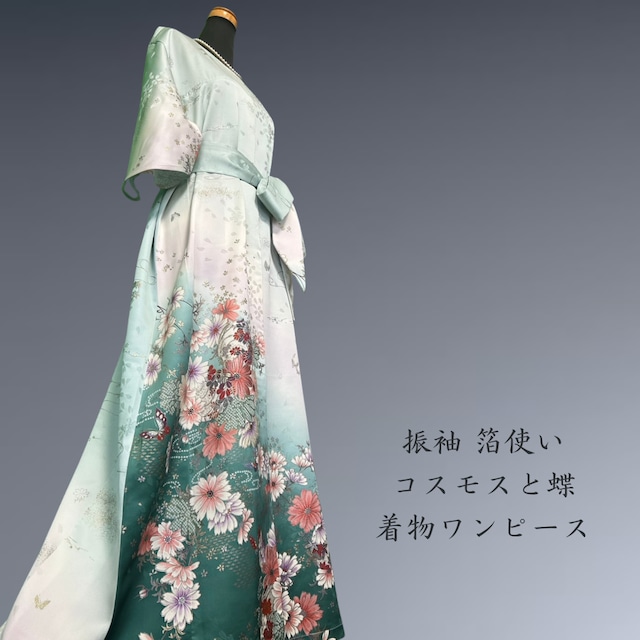 振袖 箔使い コスモスと蝶 着物ワンピース
