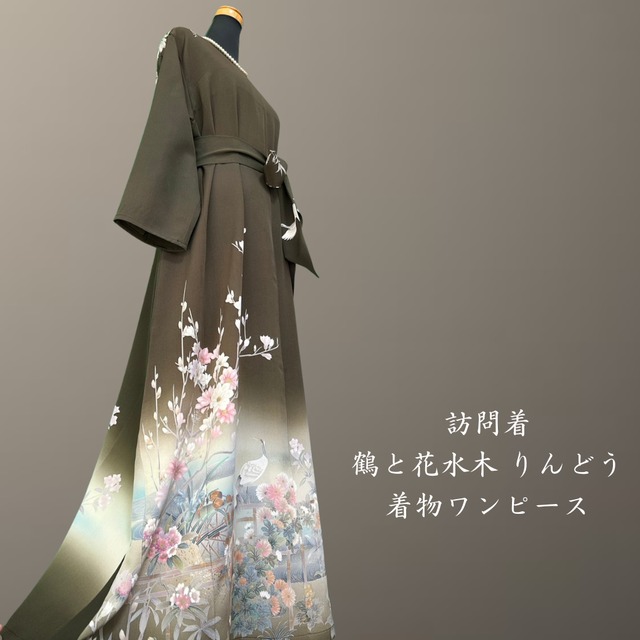 訪問着 鶴と花水木 りんどう 着物ワンピース
