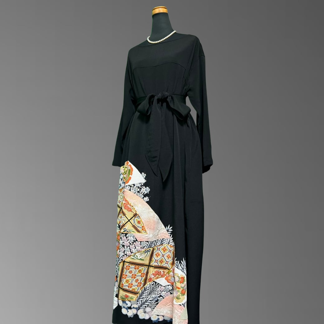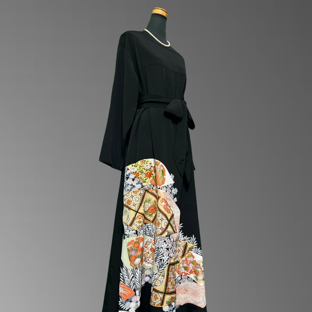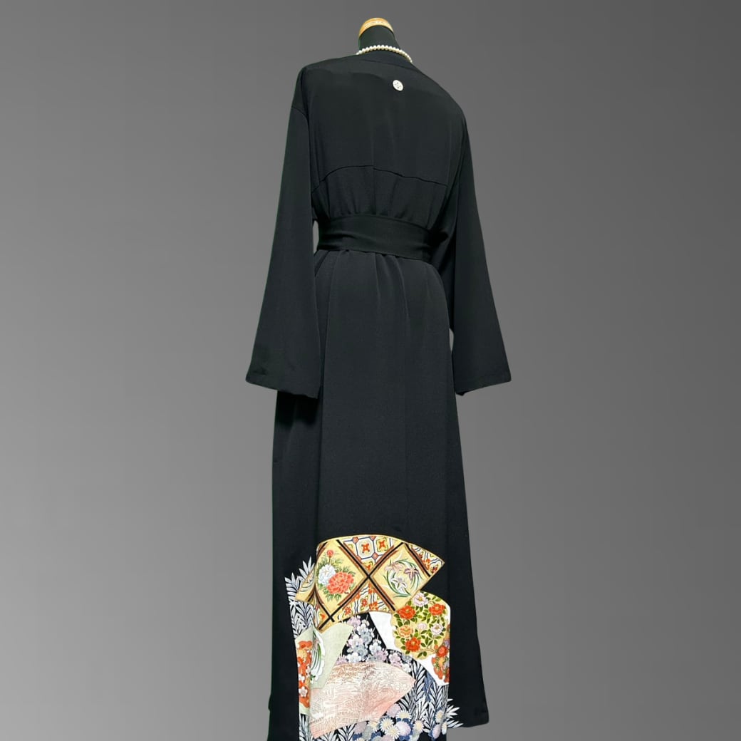 黒留袖 金彩 扇面 一部刺繍 着物ワンピース