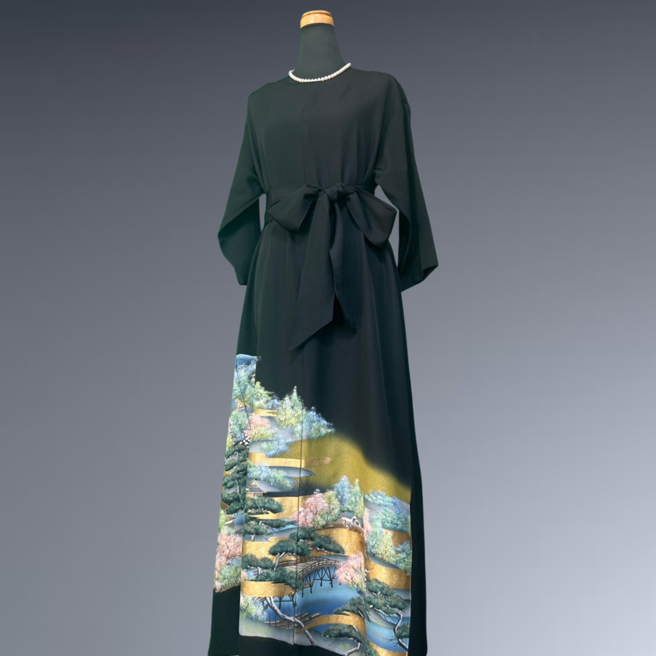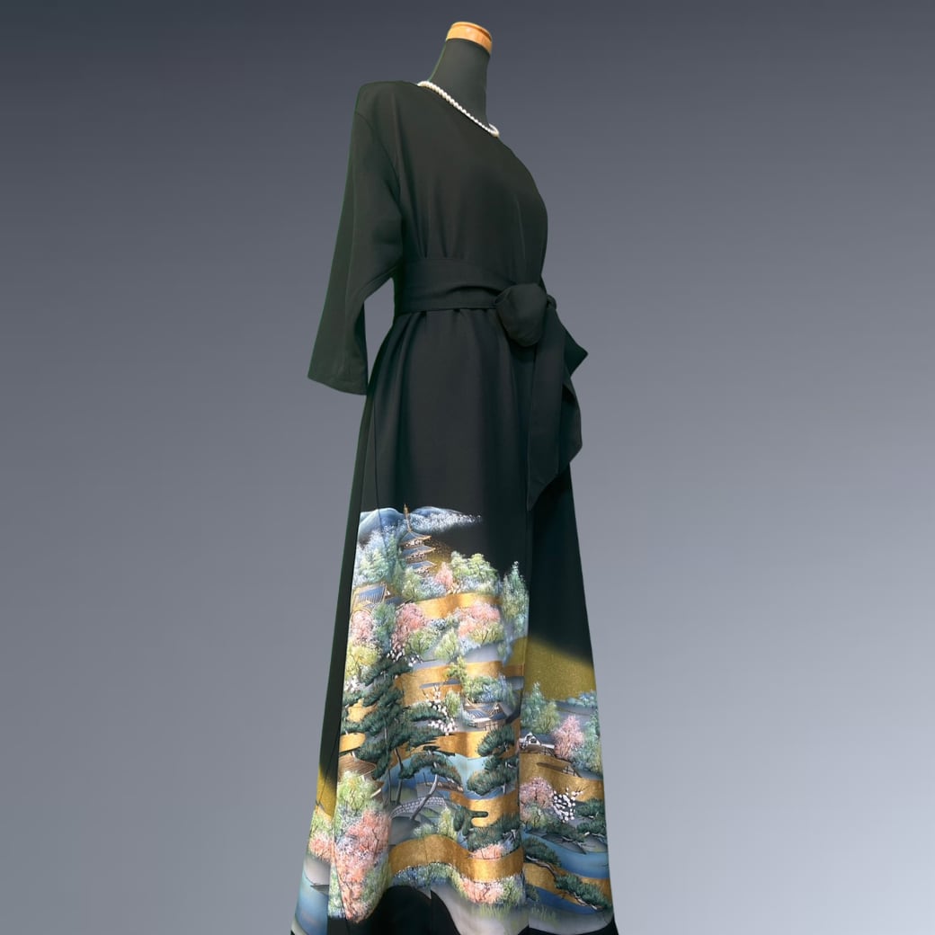 静寂の中に品格を宿す、黒留袖の着物ワンピース。