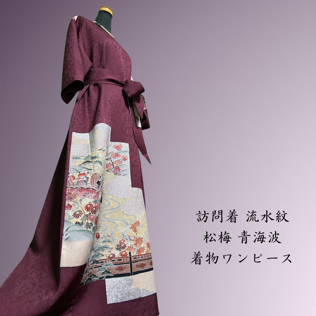 訪問着 流水紋 松梅 青海波 着物ワンピース