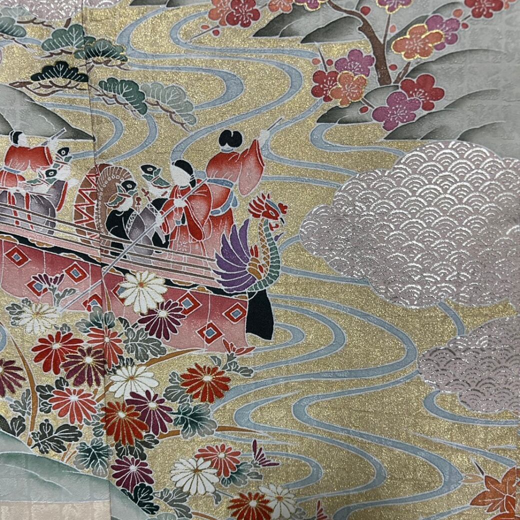 その流れの中に咲く松・梅は、厳冬にも負けない生命力と気高さを表し、大切な節目や特別な席に寄り添う気品を添えます。