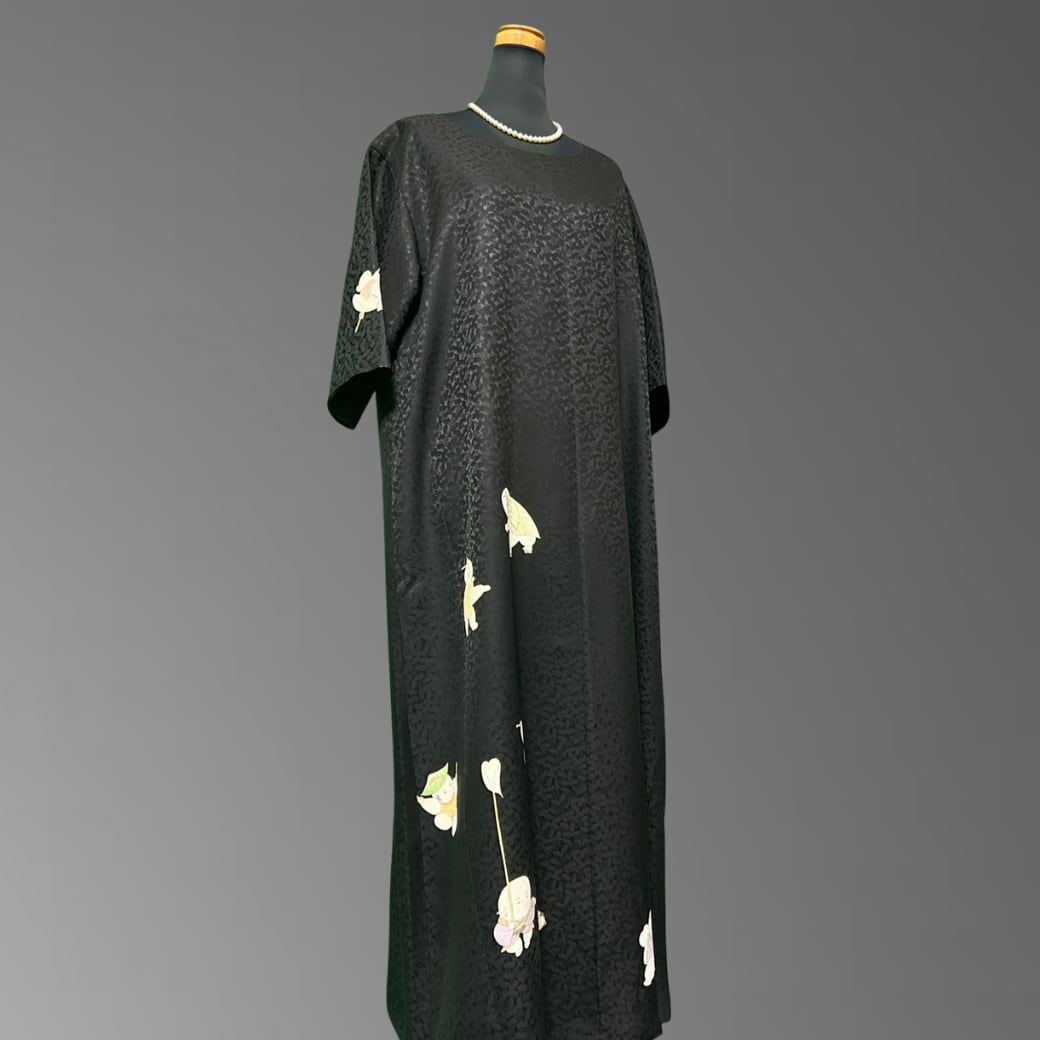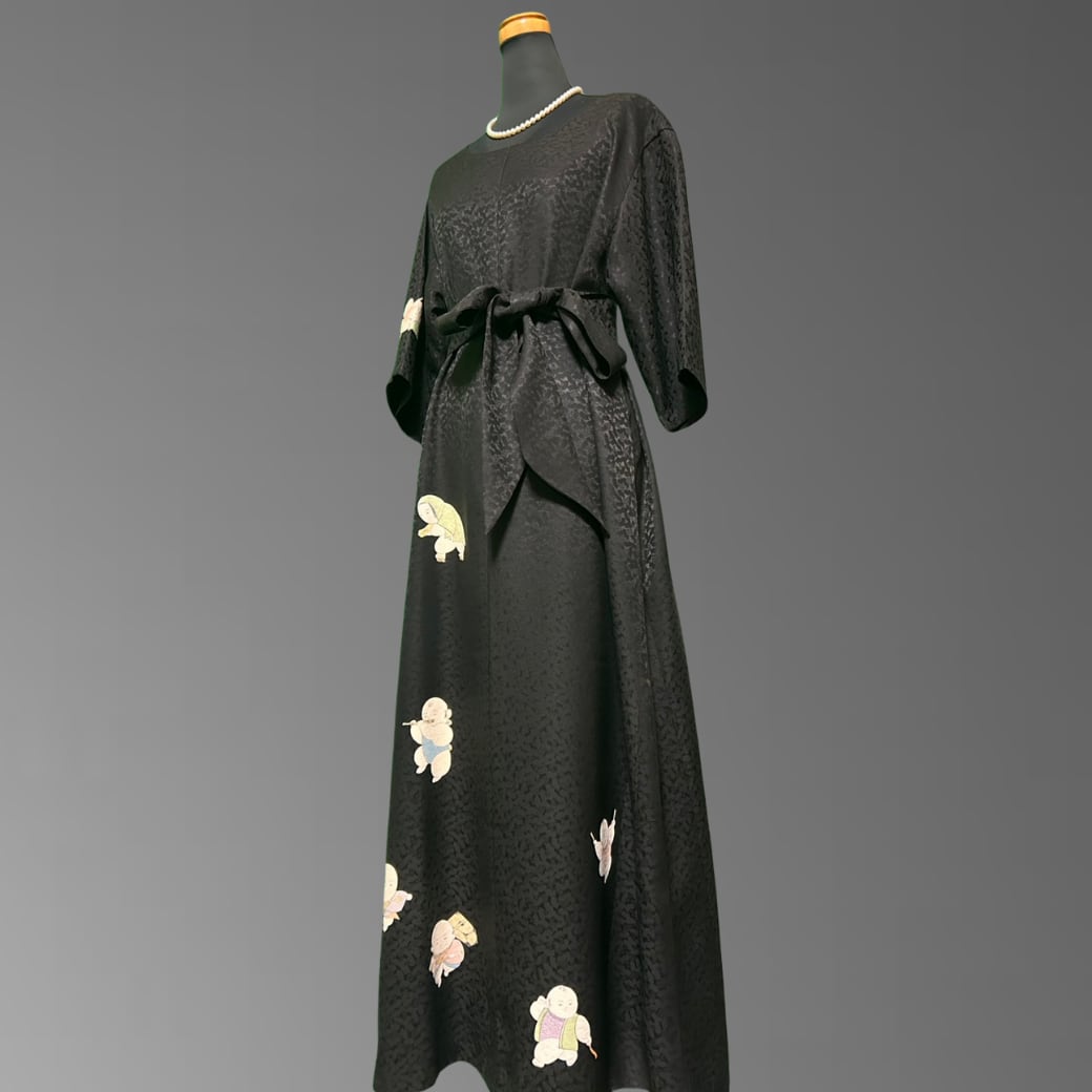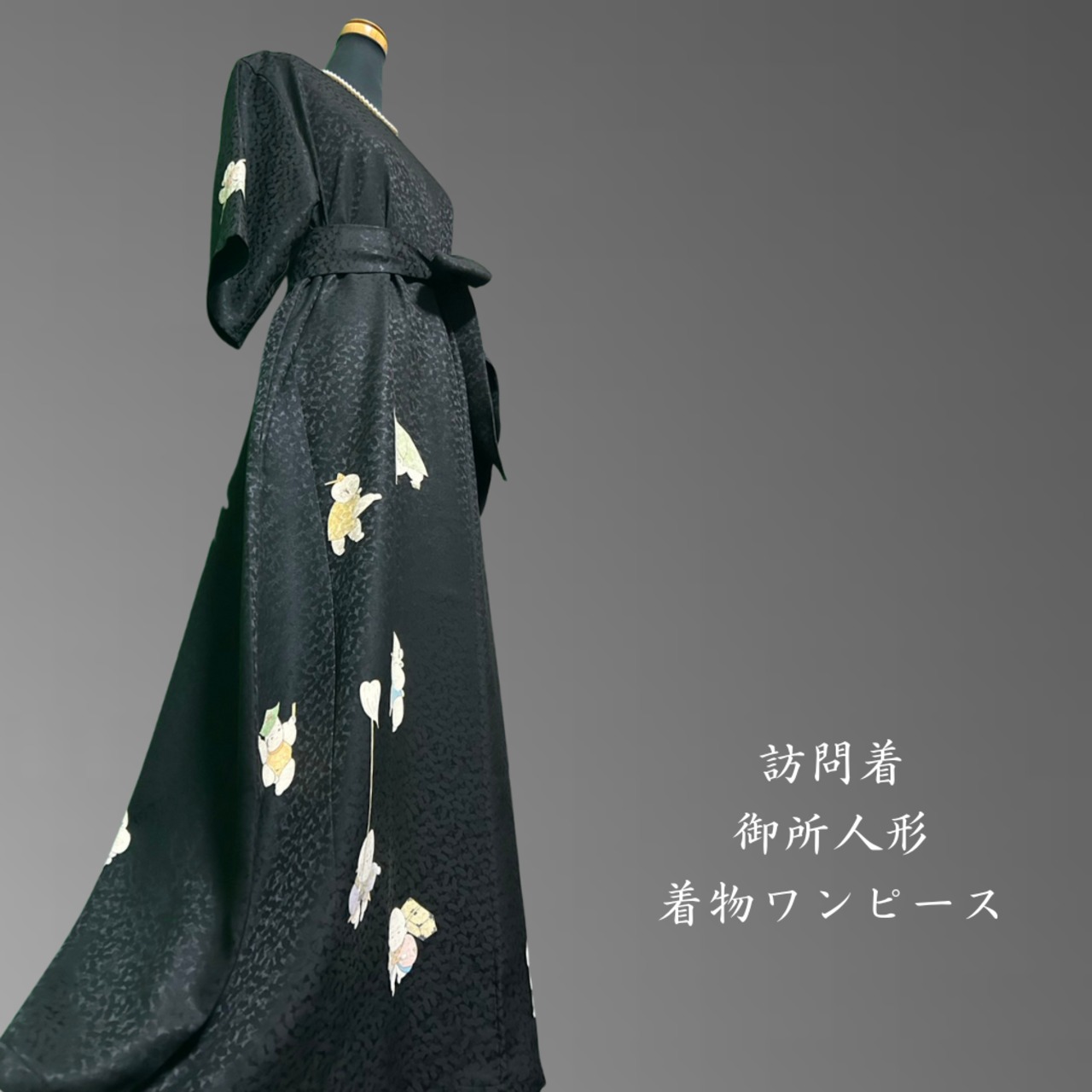 格調高い訪問着から仕立てた、華やかさと温かみを兼ね備えた着物ワンピースです。