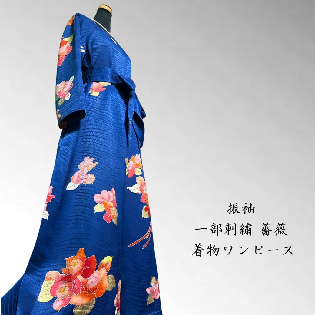 振袖 一部刺繍 薔薇 着物ワンピース