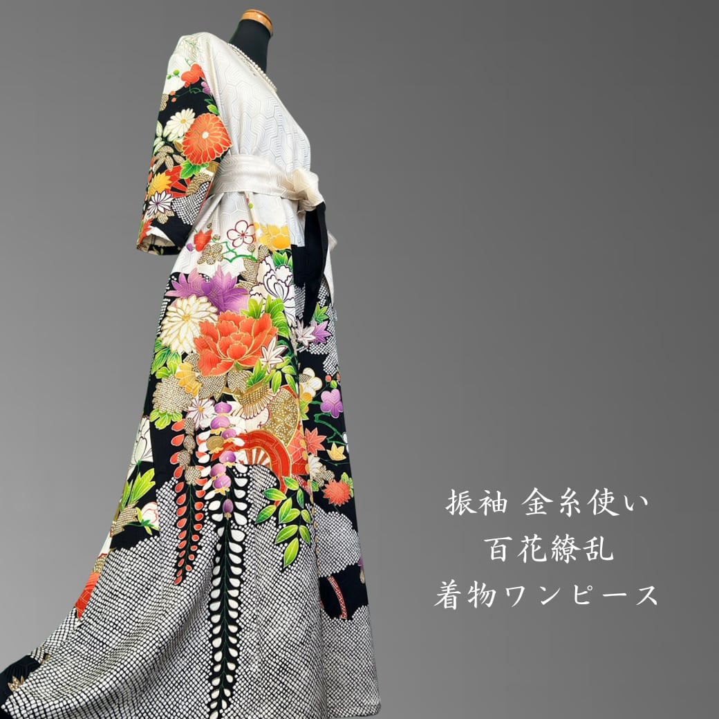 振袖 金糸使い 百花繚乱 着物ワンピース