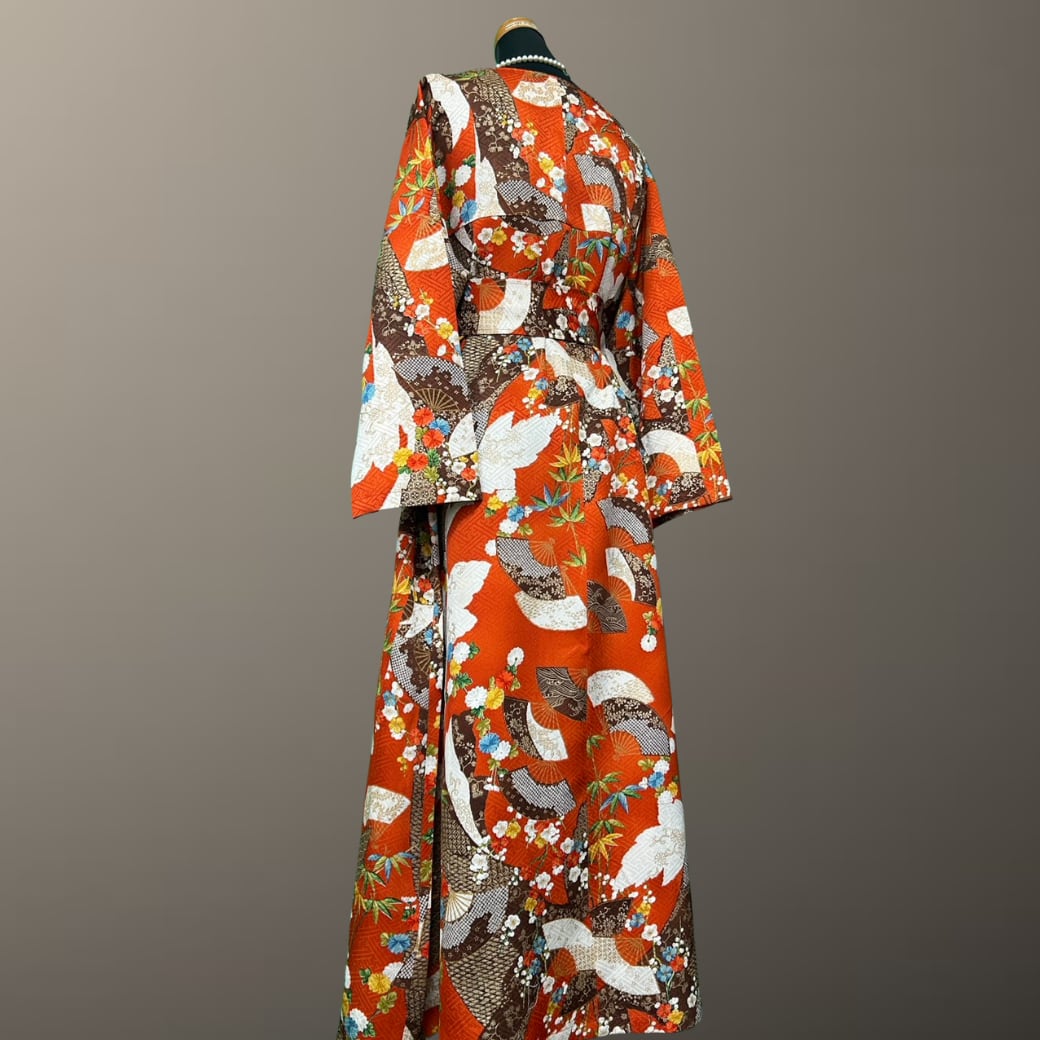 振袖 道長取り 扇乱舞 竹 梅 菊 着物ワンピース