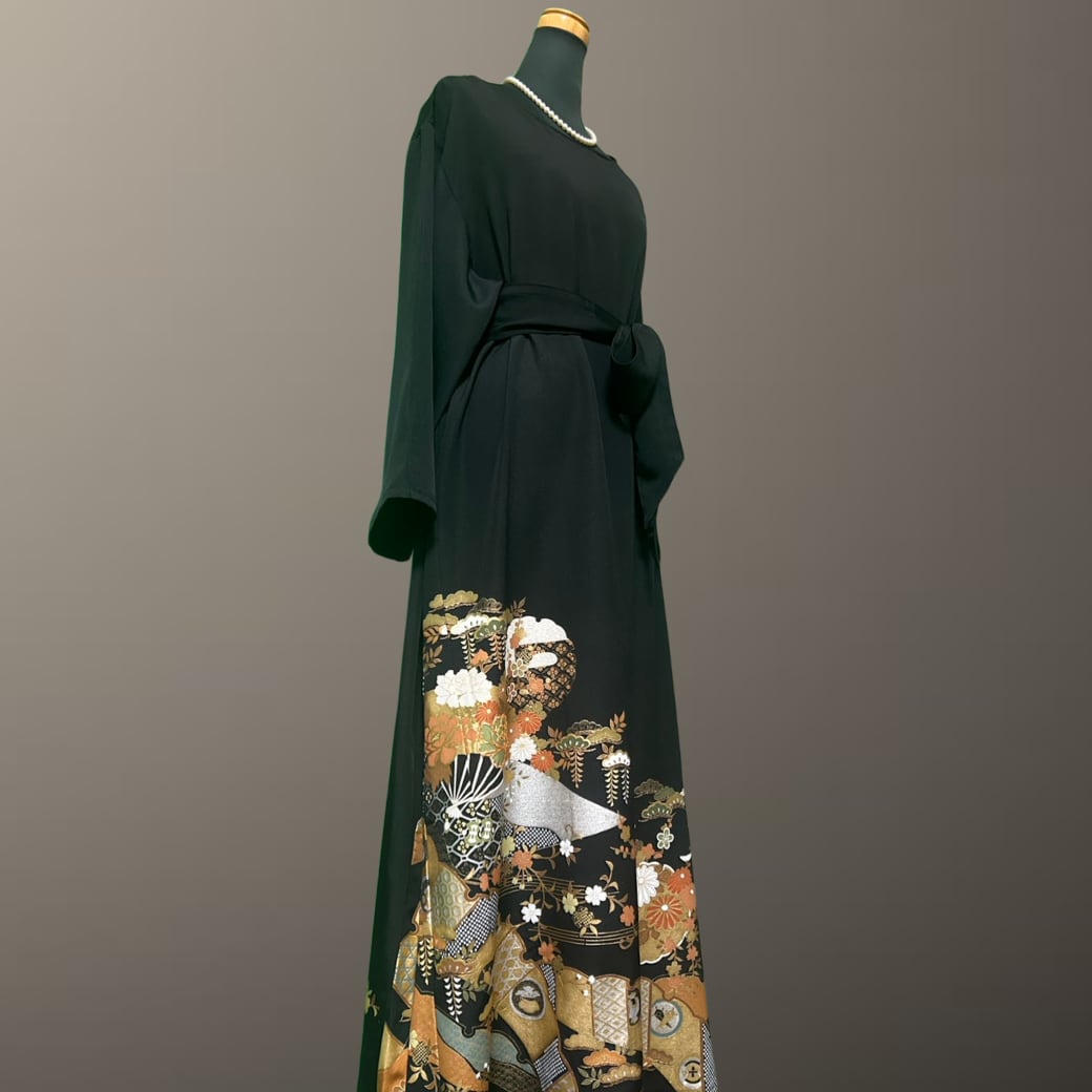 黒留袖 金彩 雪輪文様 宝尽くし 着物ワンピース