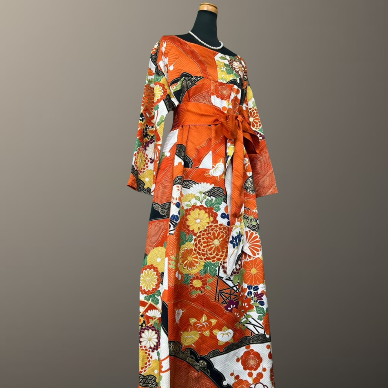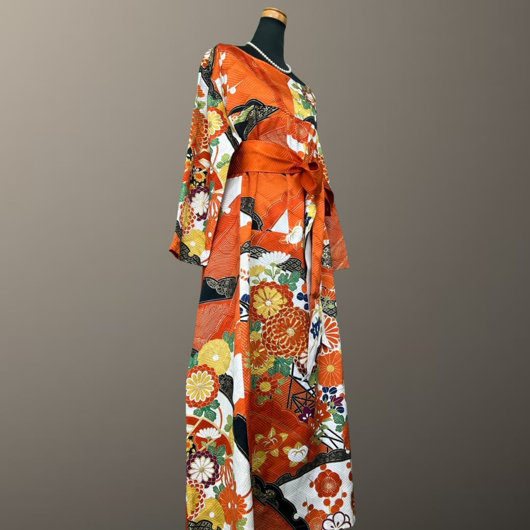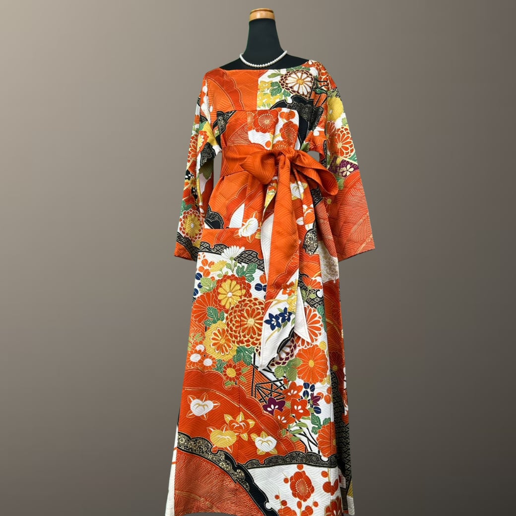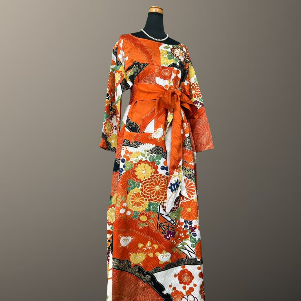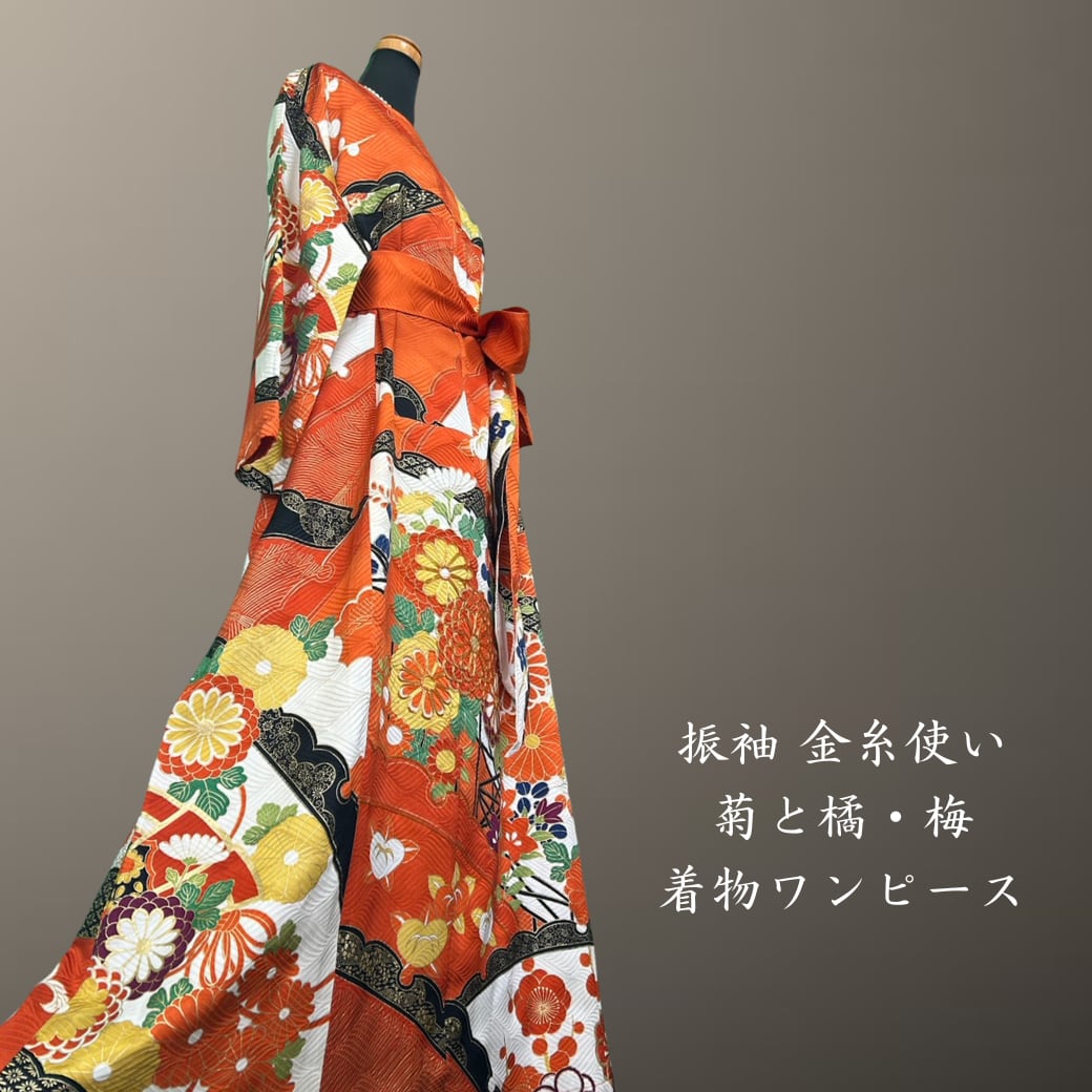 振袖 金糸使い 菊と橘・梅 着物ワンピース