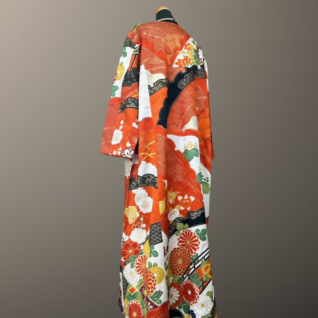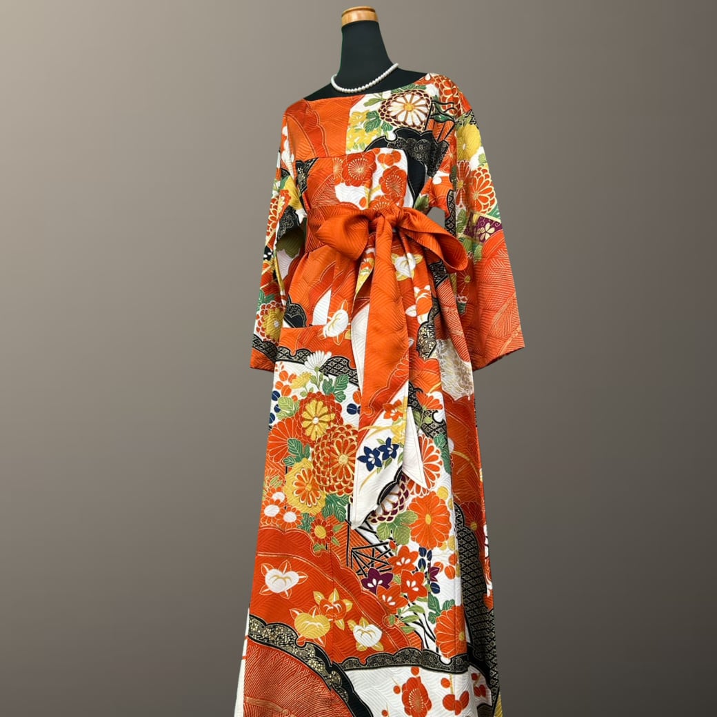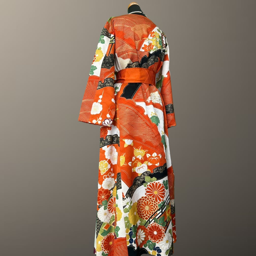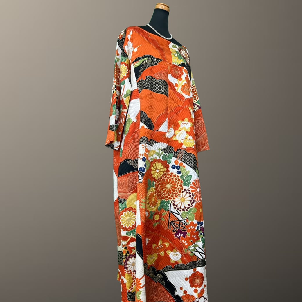 振袖 金糸使い 菊と橘・梅 着物ワンピース