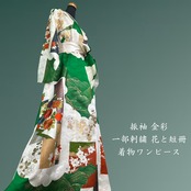 振袖 金彩 一部刺繍 花と短冊 着物ワンピース