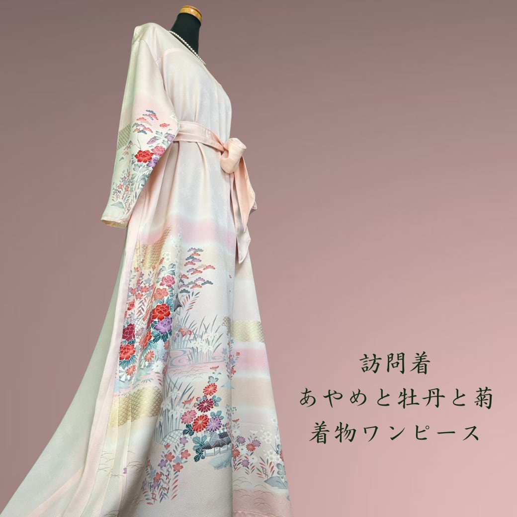 訪問着 あやめと牡丹と菊 着物ワンピース