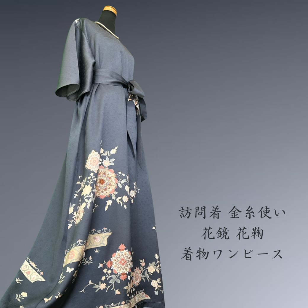 訪問着 金糸使い 花鏡 花鞠 着物ワンピース