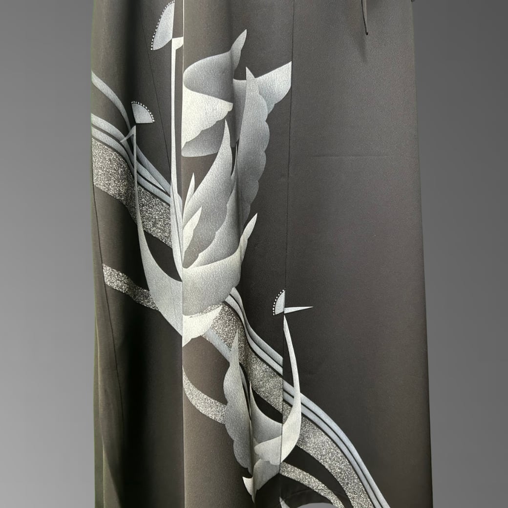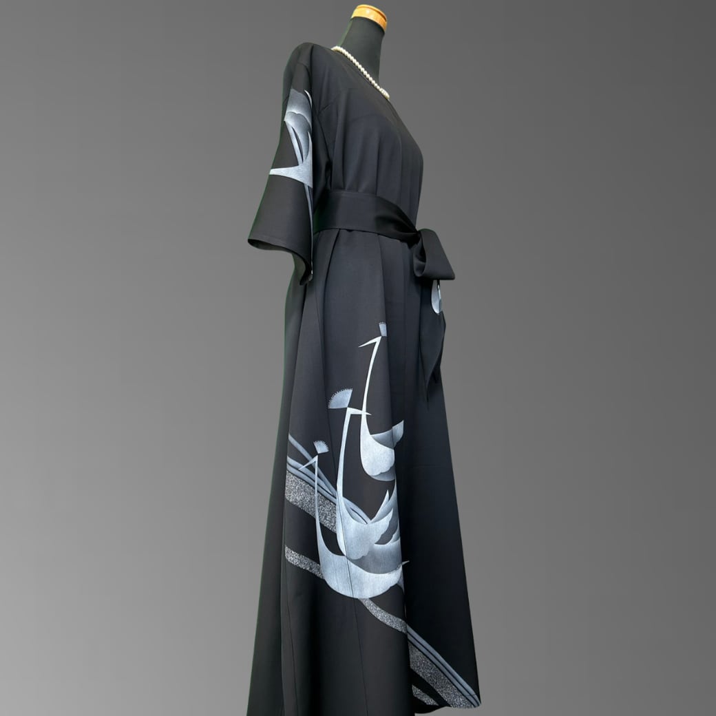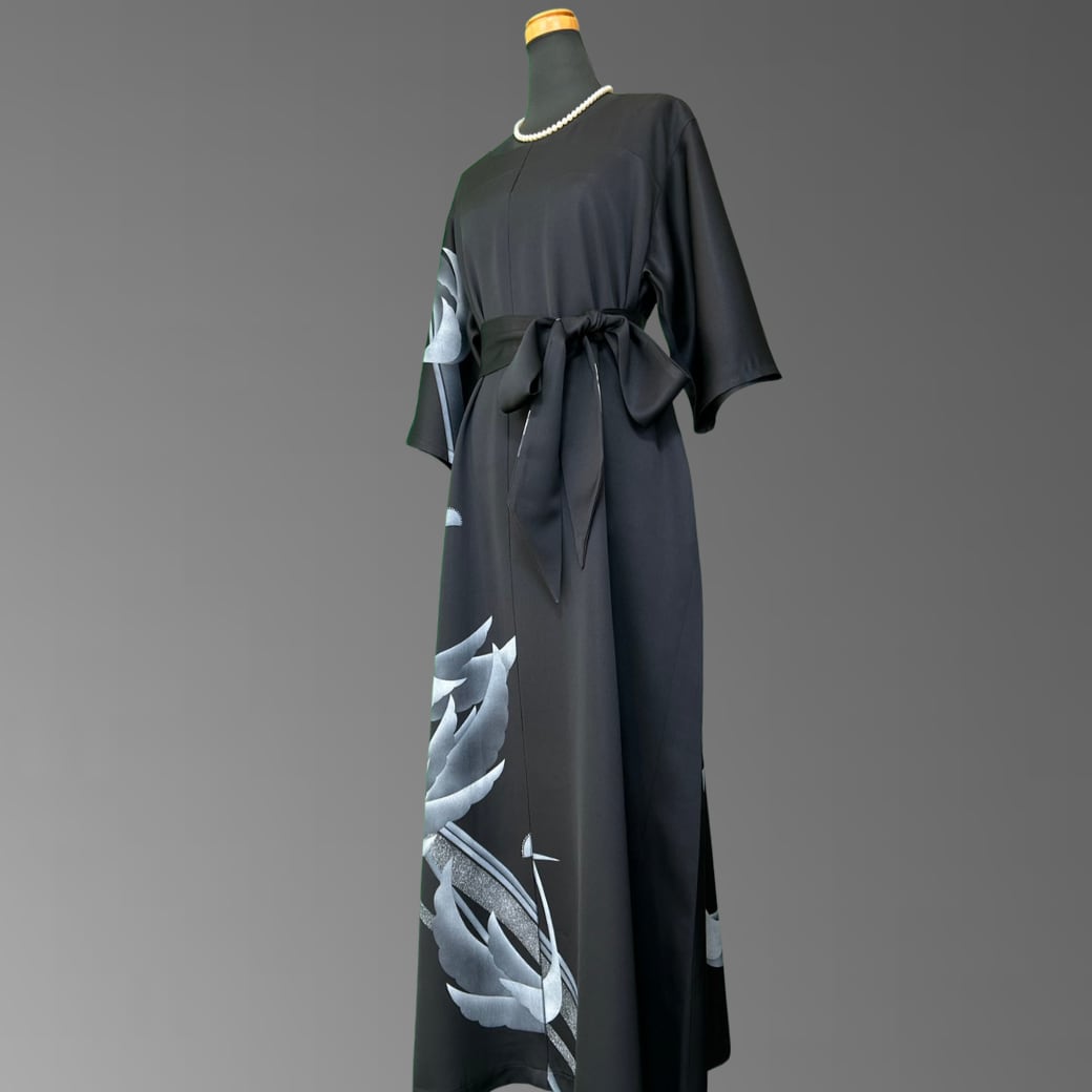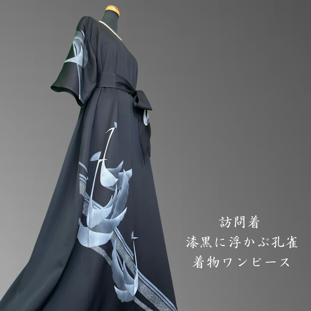 訪問着 漆黒に浮かぶ孔雀 着物ワンピース