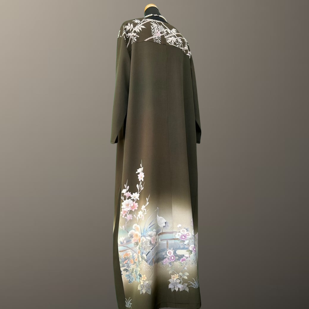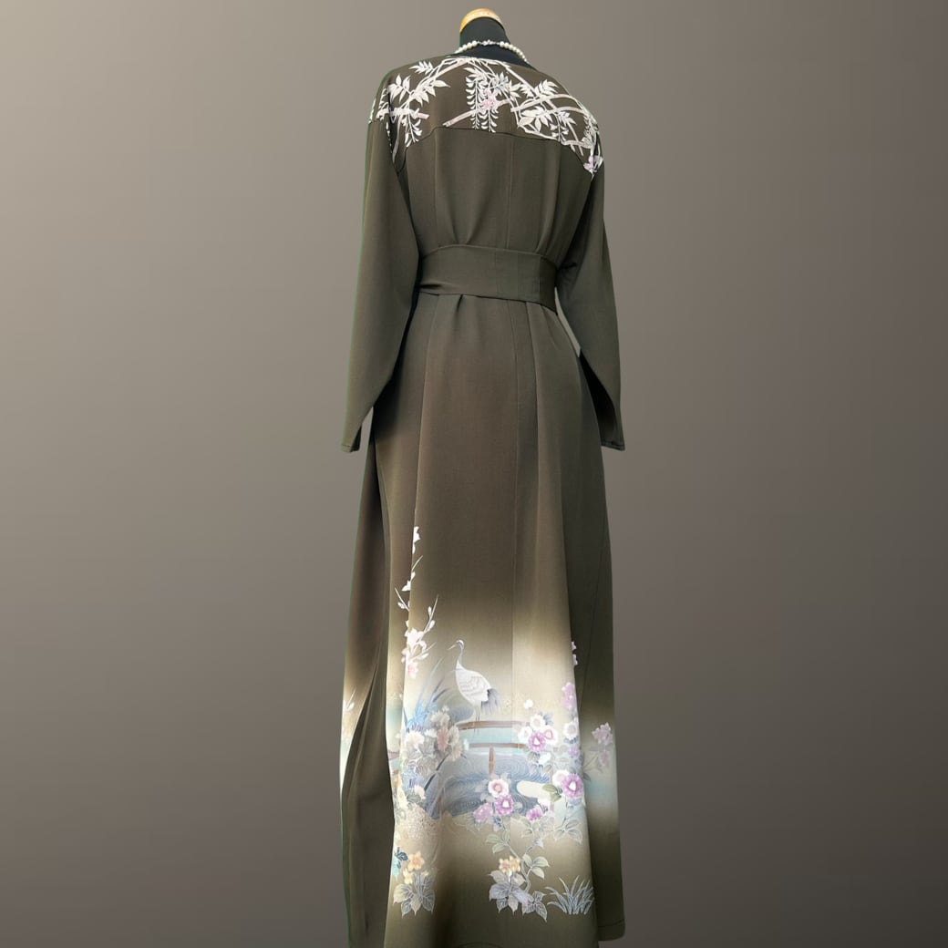 訪問着 鶴と花水木 りんどう 着物ワンピース