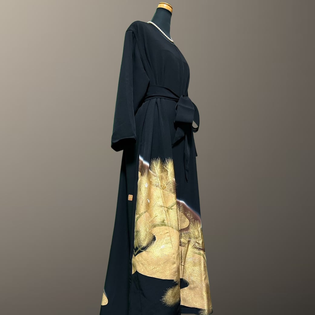 黒留袖 作家物 金彩 道長取り 松 着物ワンピース