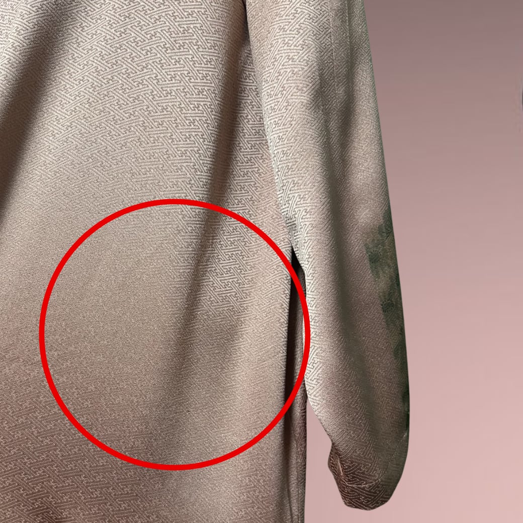 ※右後ろ身頃に、光の当たり方によってうっすらと色の濃淡が見られる箇所がございます(13枚目画像参照)。