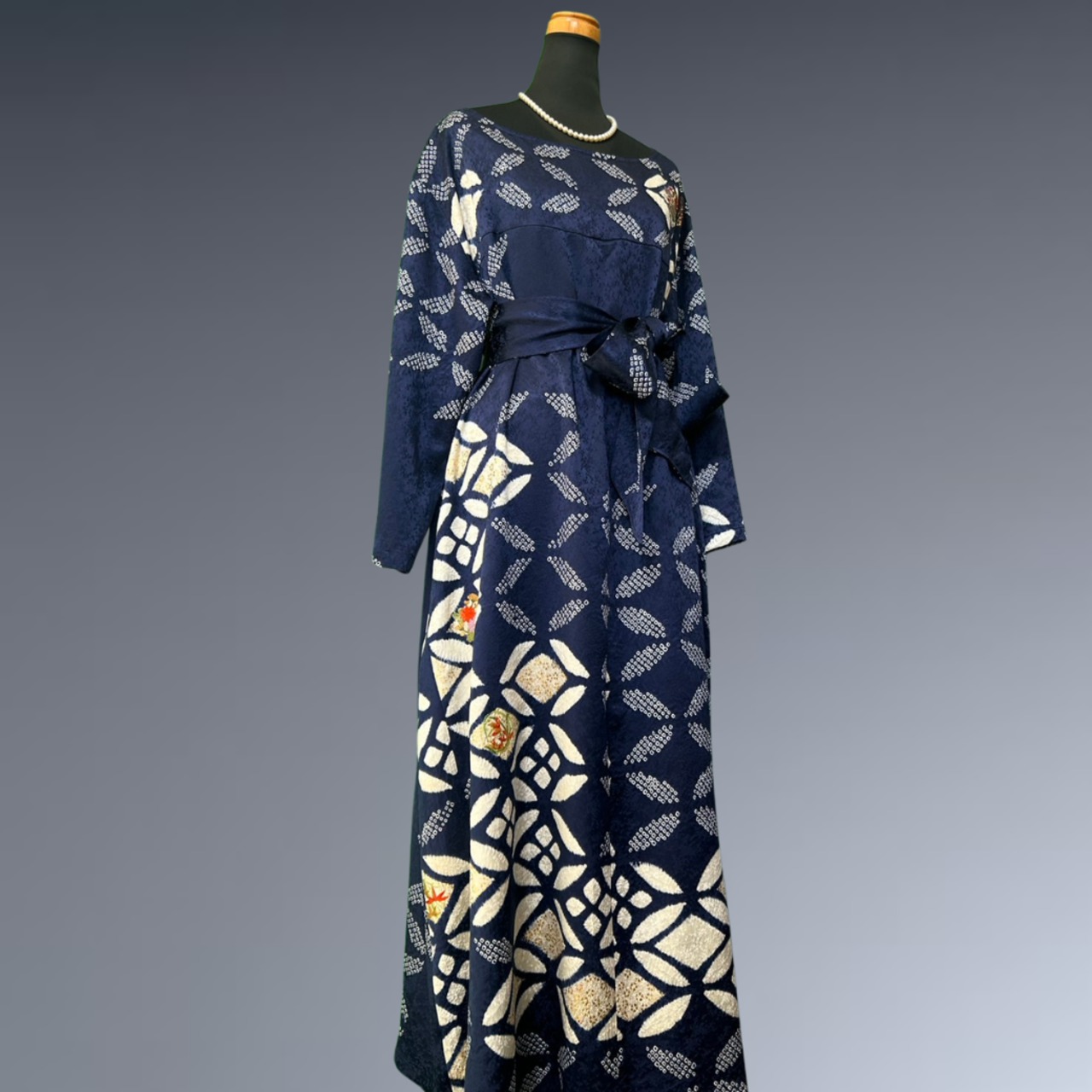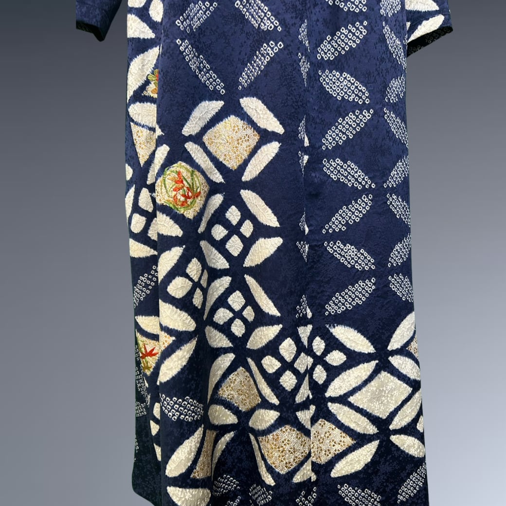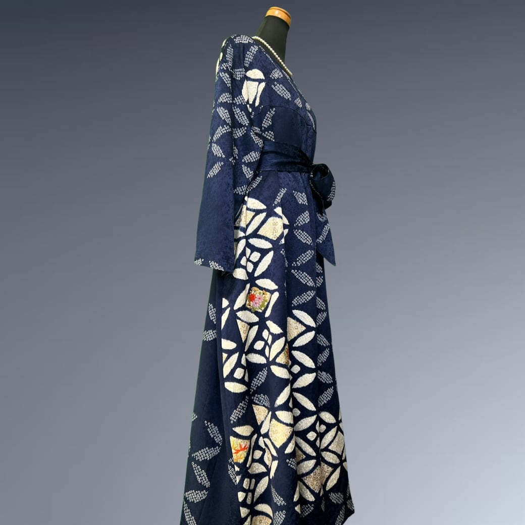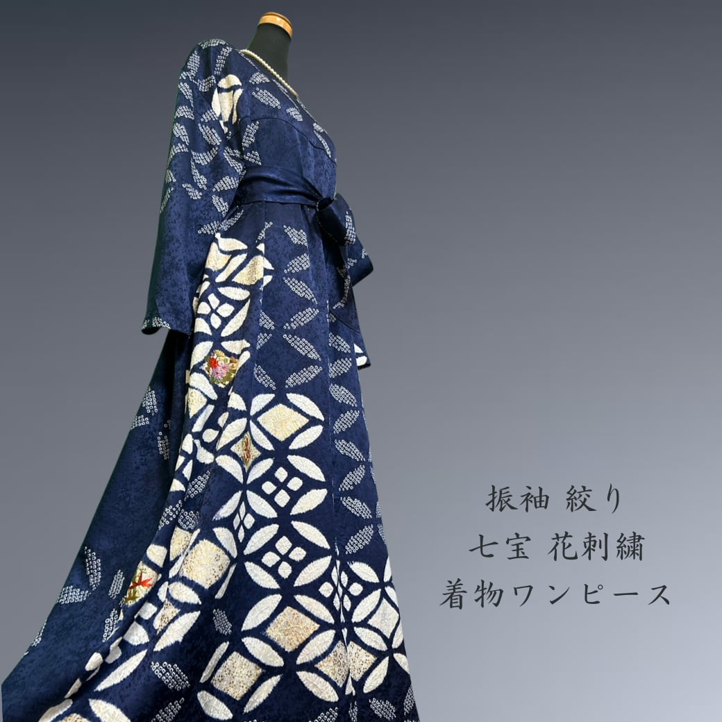 振袖 絞り 七宝 花刺繍 着物ワンピース