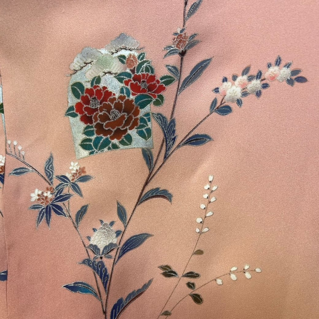 淡い桜色からほのかに移ろう地色が、全体に穏やかな空気をまとわせ、装う方の佇まいまでやわらかく引き立ててくれます。