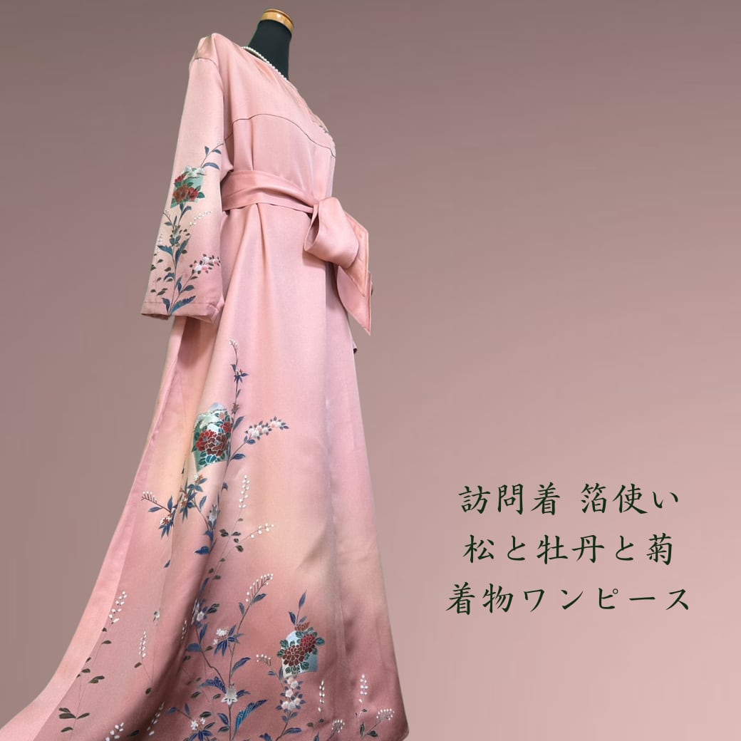 訪問着 箔使い 松と牡丹と菊 着物ワンピース