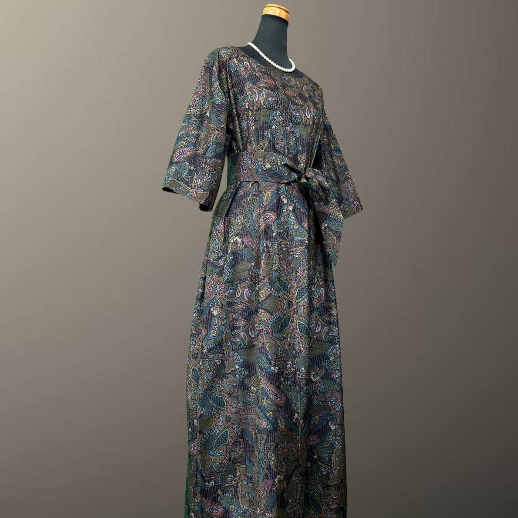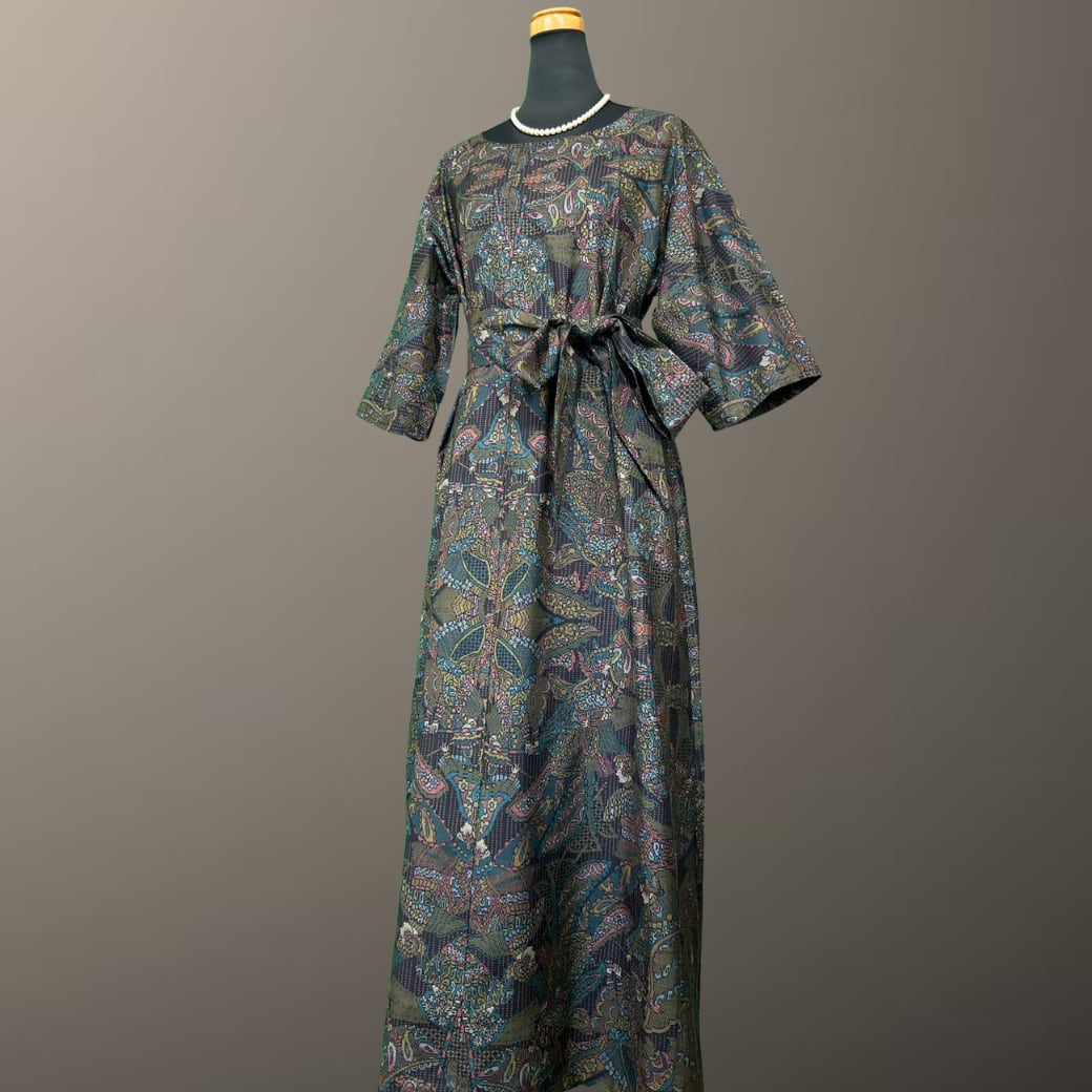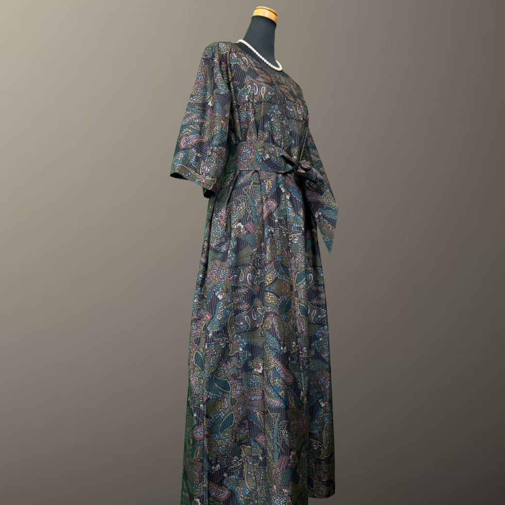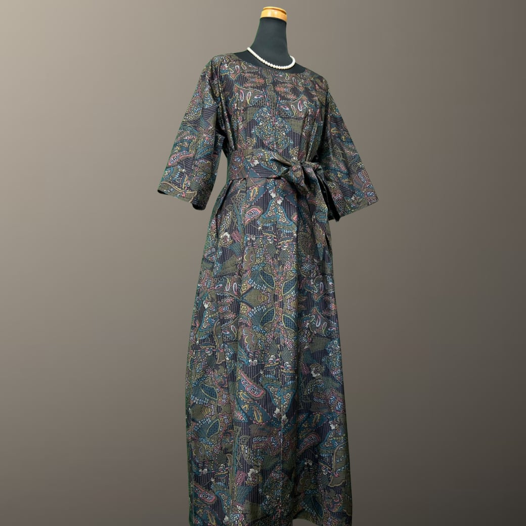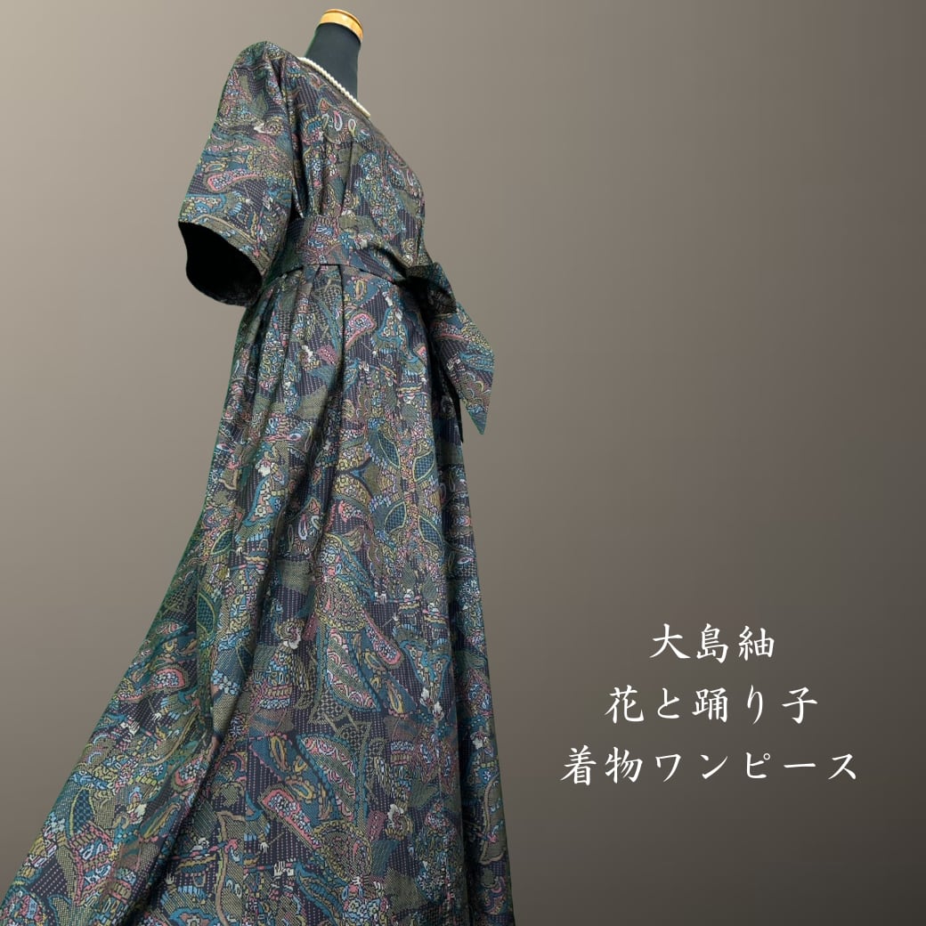 こちらの着物ワンピースは、しなやかで軽やかな風合いが魅力の大島紬をもとに仕立てた一着です。