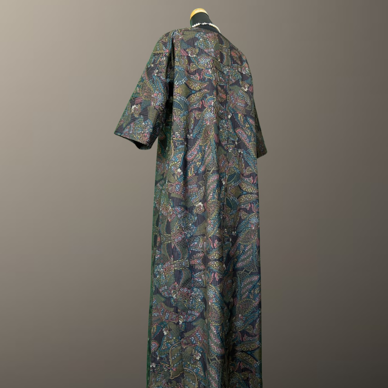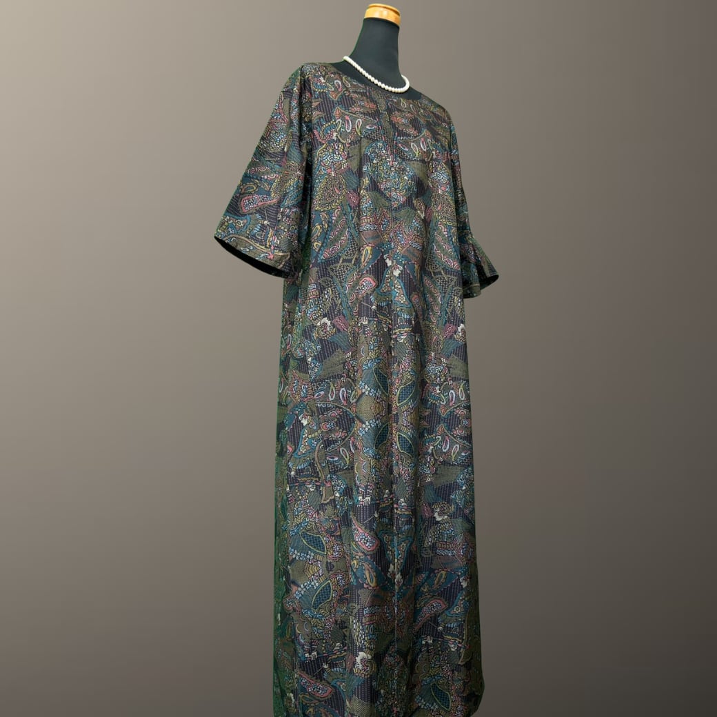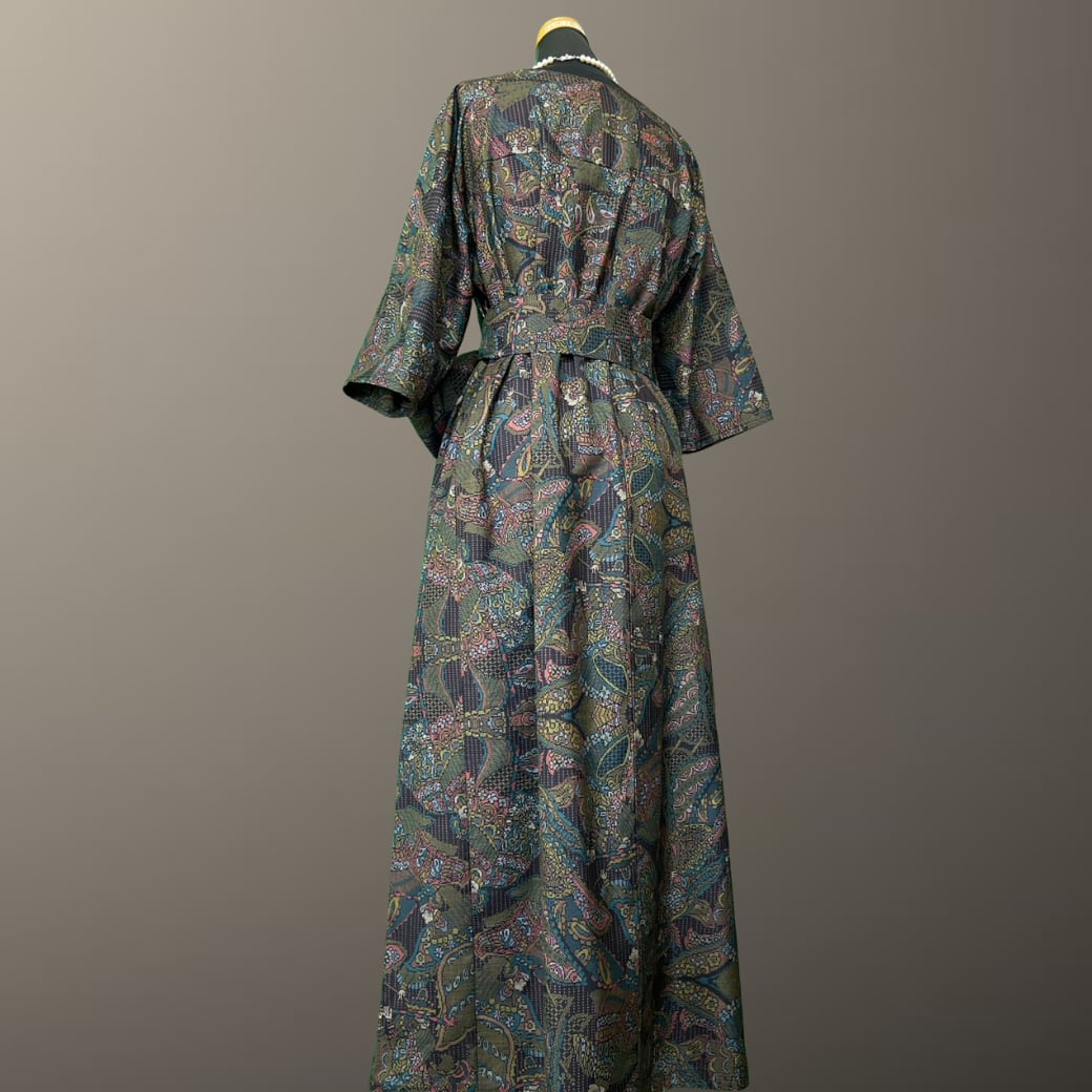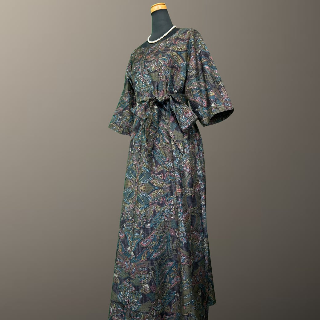 こちらの着物ワンピースは、しなやかで軽やかな風合いが魅力の大島紬をもとに仕立てた一着です。