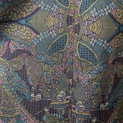 深みのある色調の中に、織りで表現された微細な色の重なりがあり、光の当たり方や動きによって表情が変わるのも大島紬ならではの魅力です。