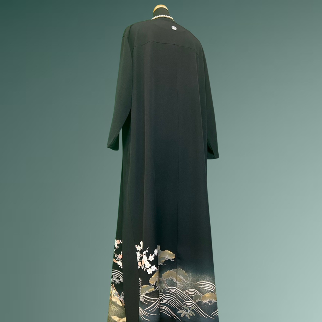 金彩をあしらった黒留袖をもとに仕立てた一着です。