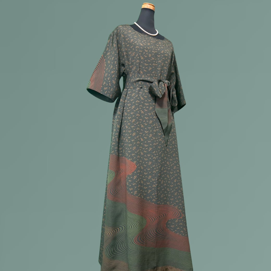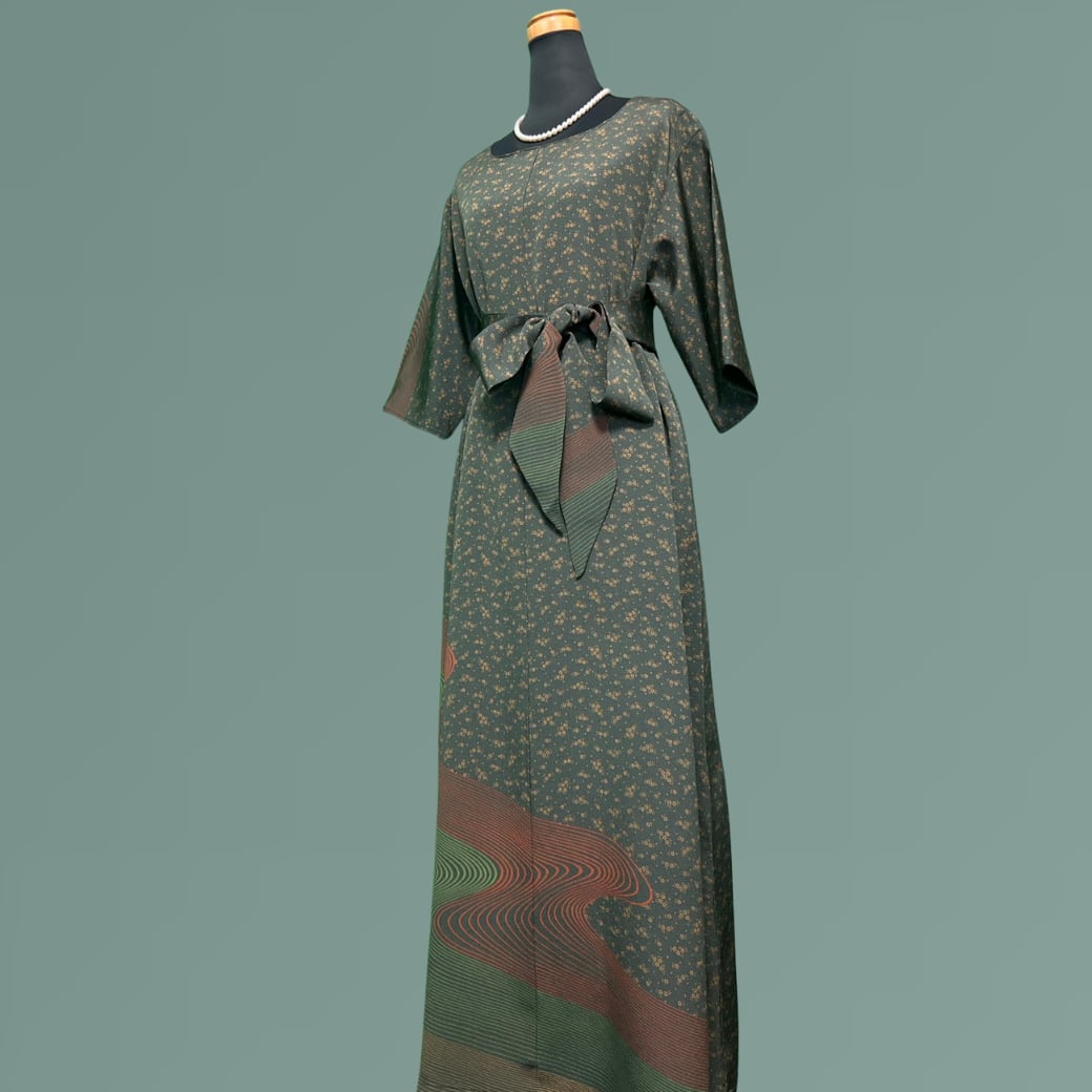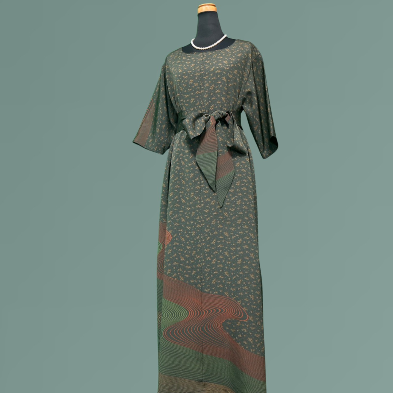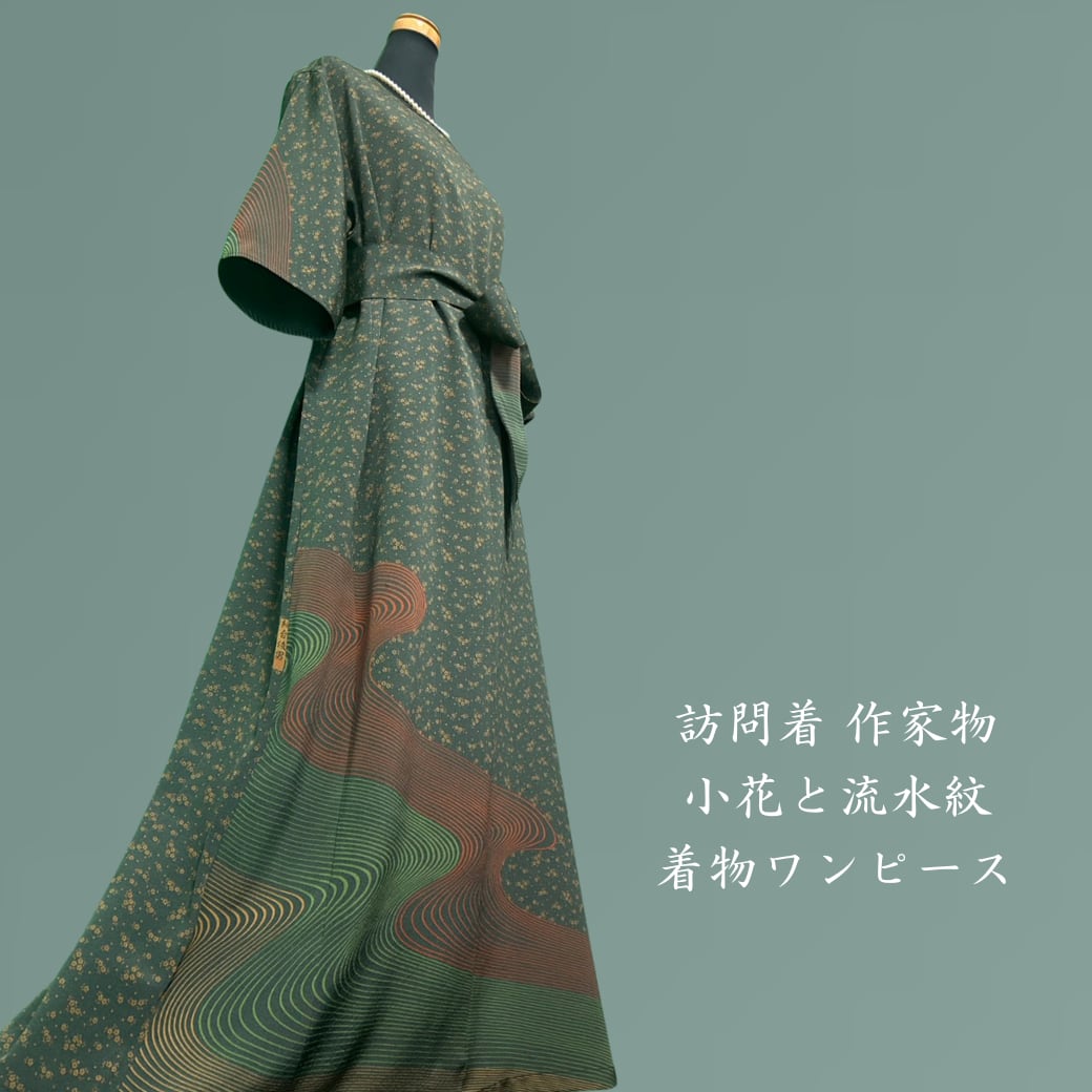 訪問着 作家物 小花と流水紋 着物ワンピース