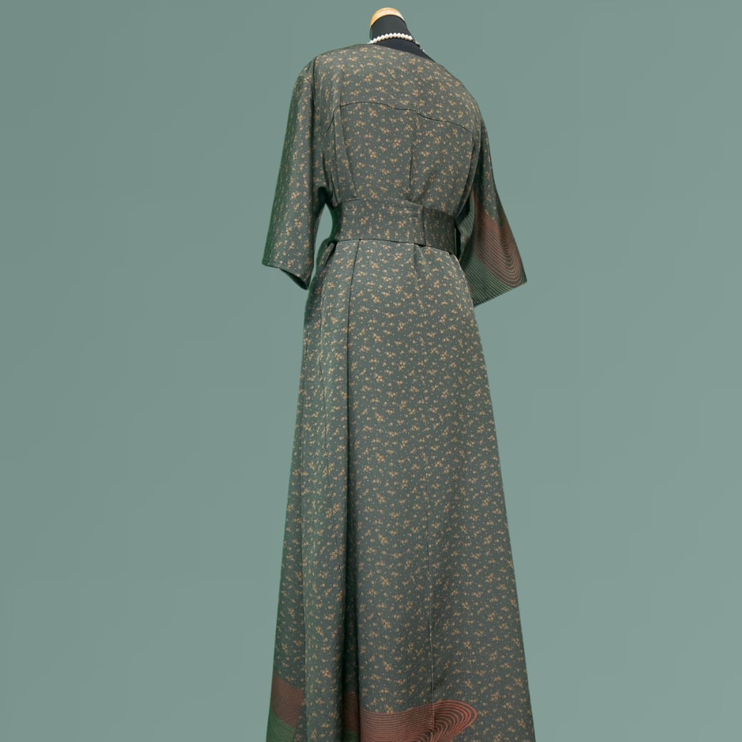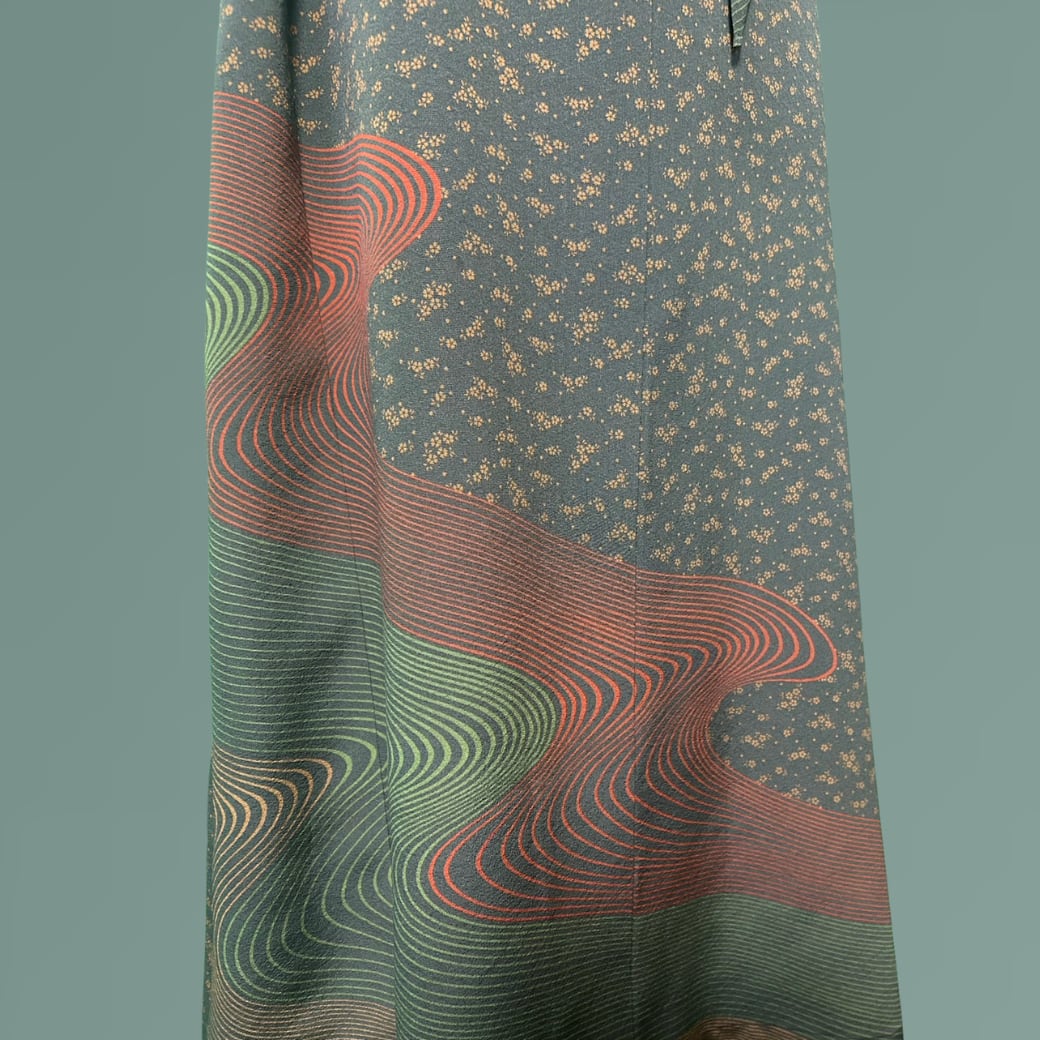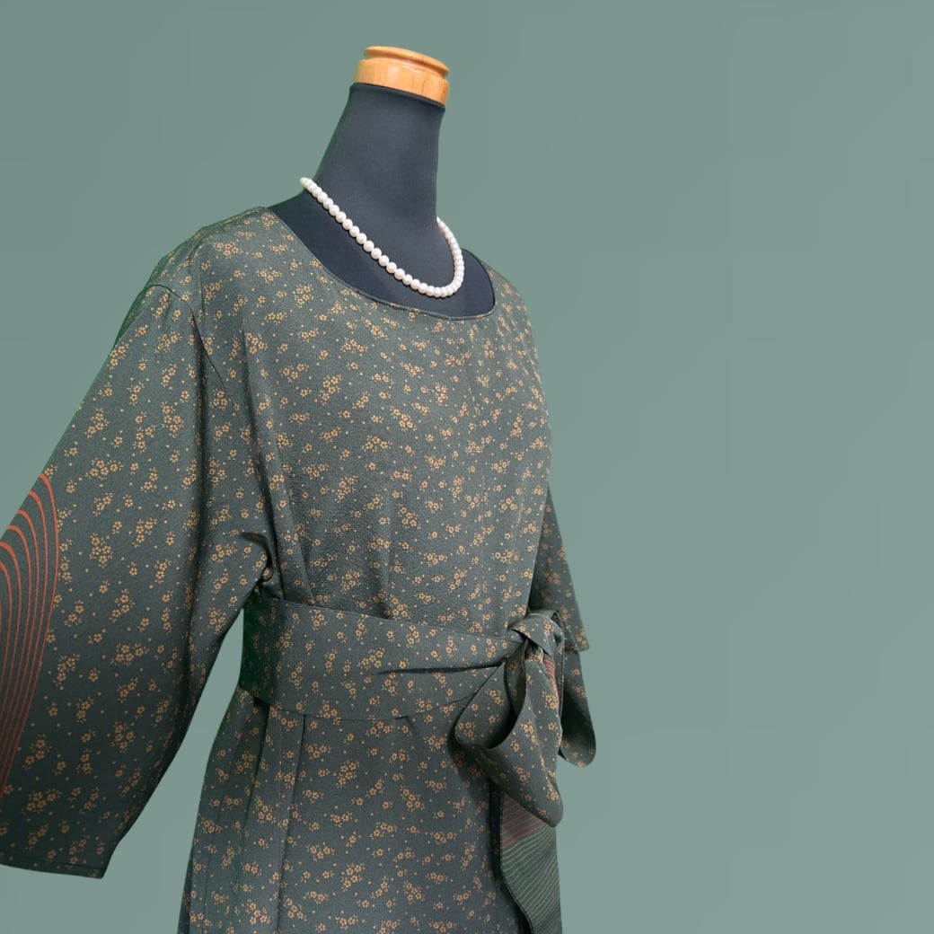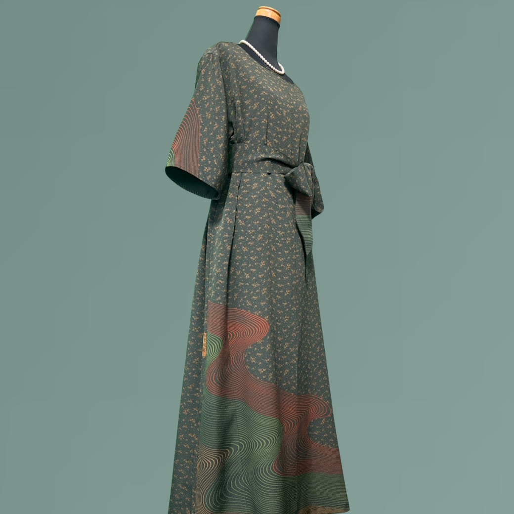 訪問着 作家物 小花と流水紋 着物ワンピース