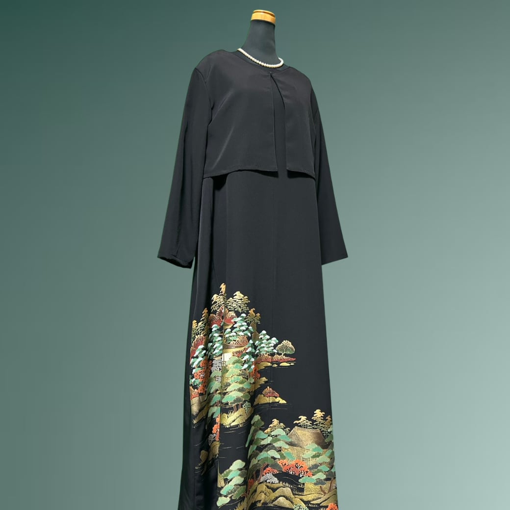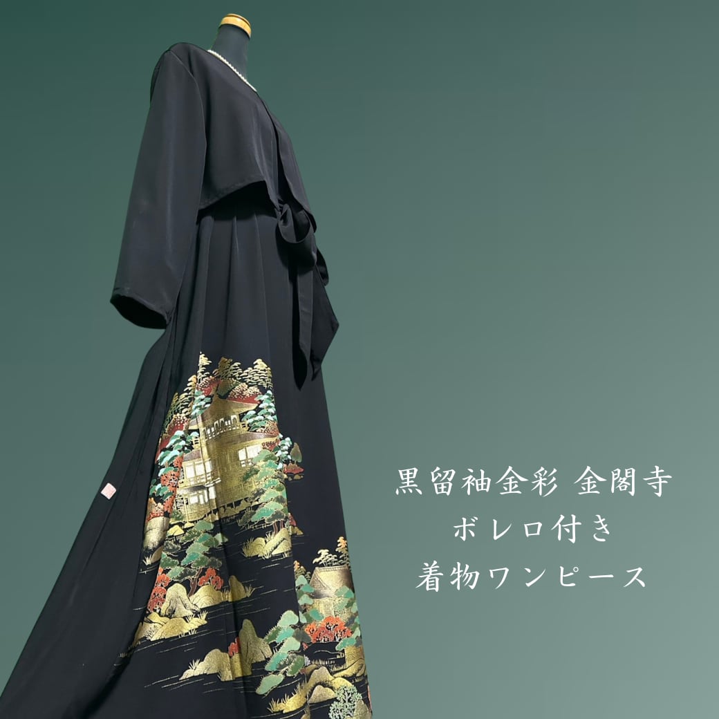 黒留袖金彩 金閣寺 ボレロ付き 着物ワンピース