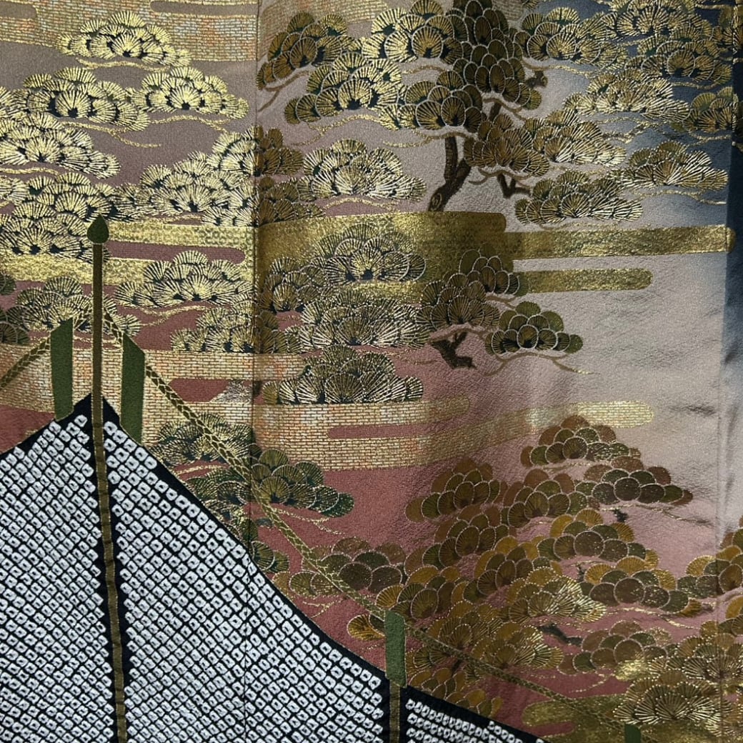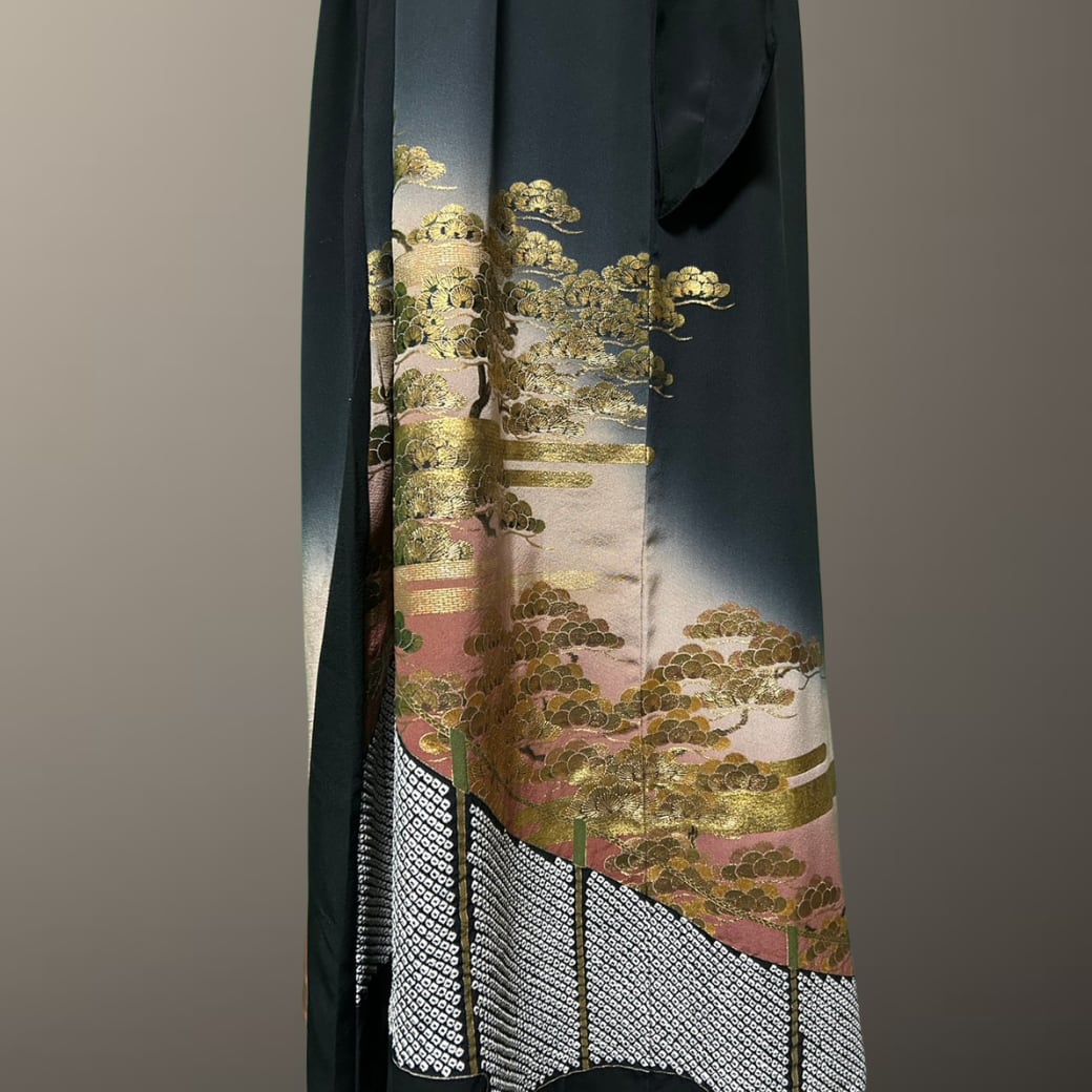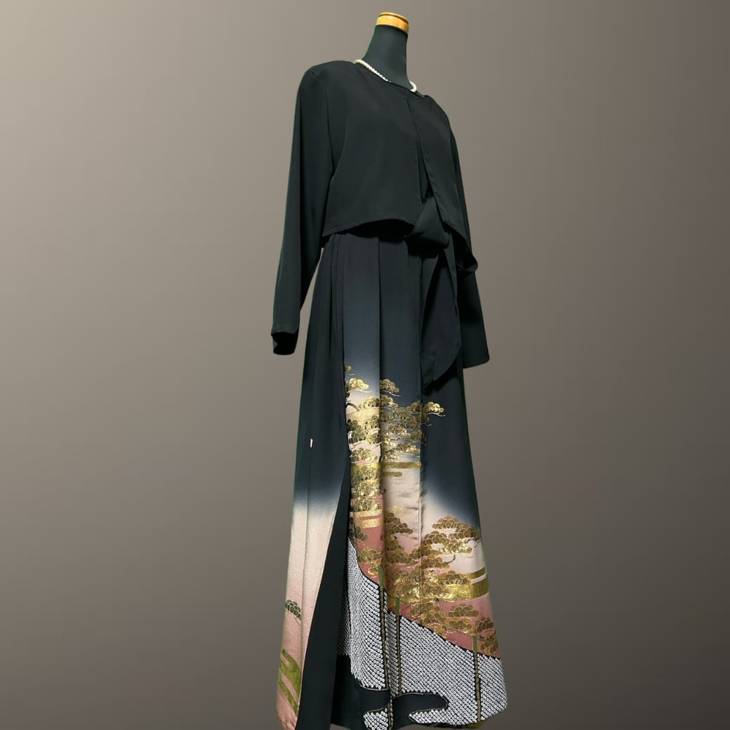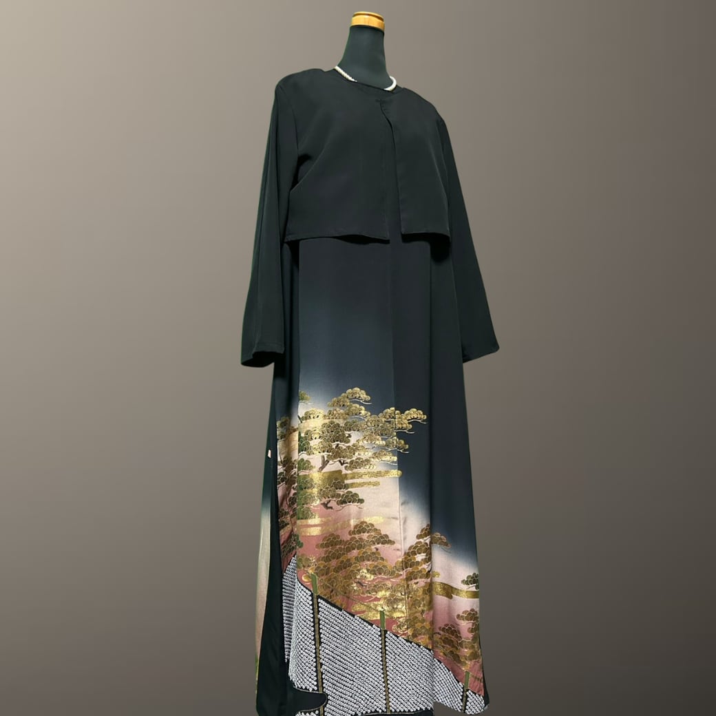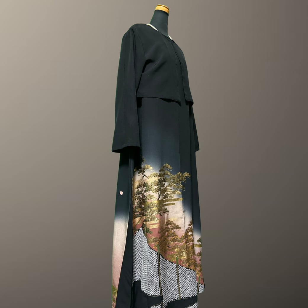 黒留袖 金彩 エ霞と松 ボレロ付き 着物ワンピース