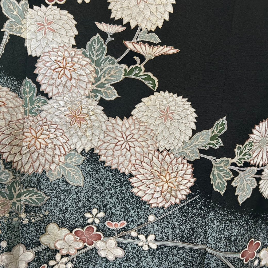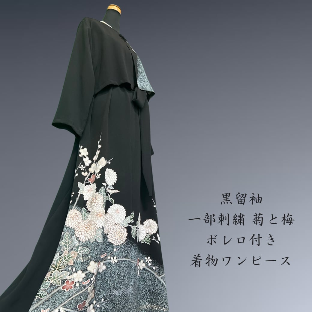 黒留袖 一部刺繍 菊と梅 ボレロ付き 着物ワンピース