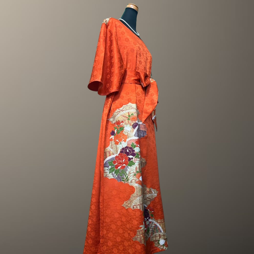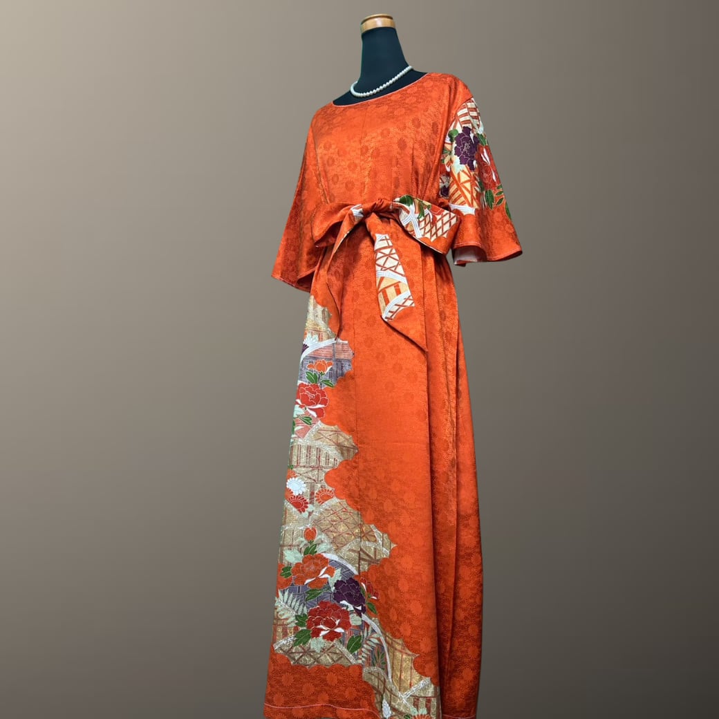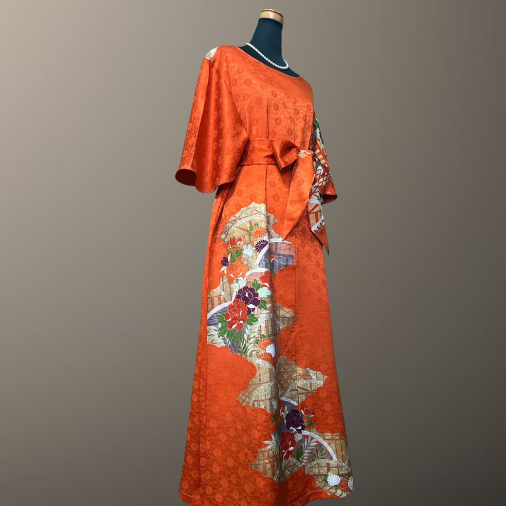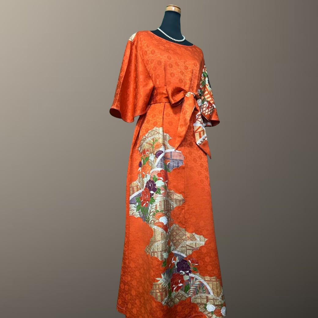 こちらは、格式ある訪問着から仕立てた着物ワンピースです。