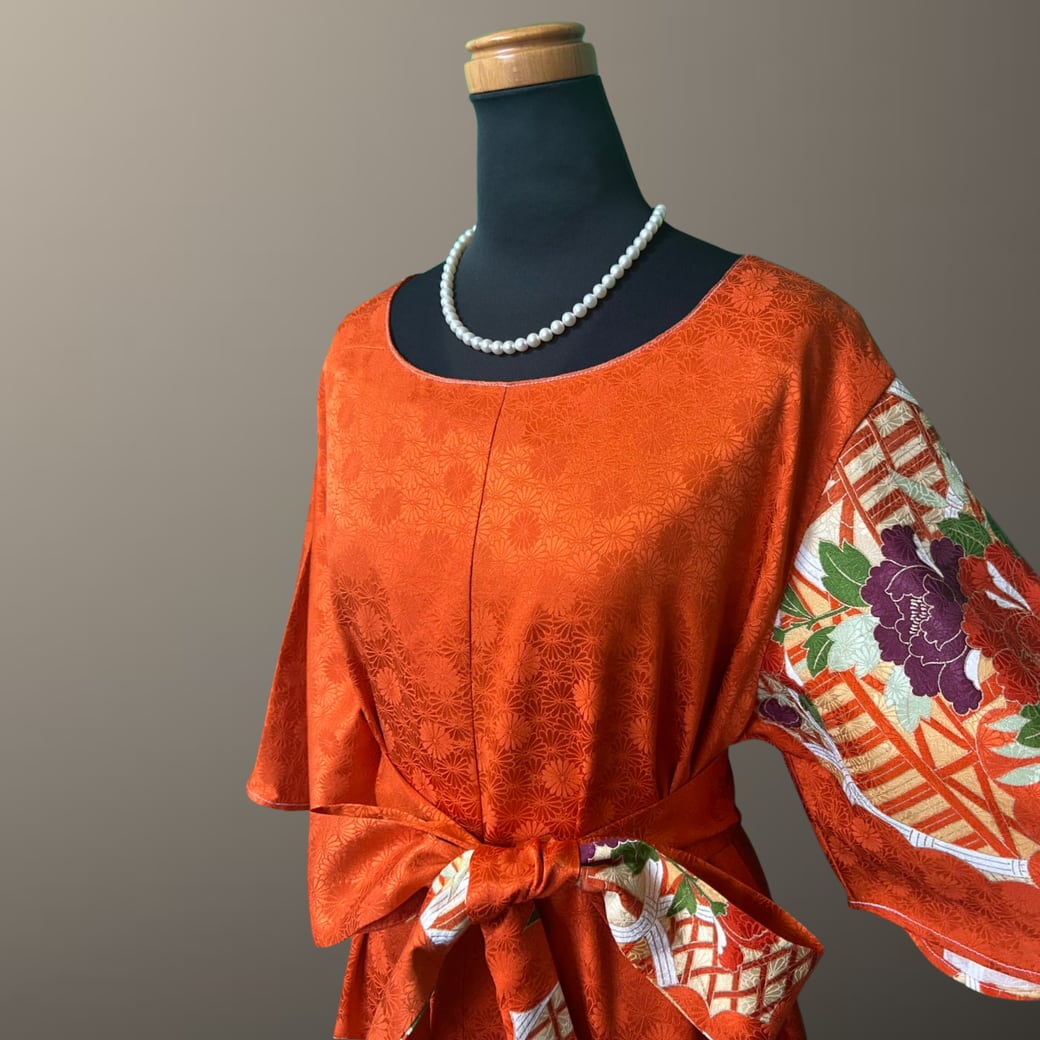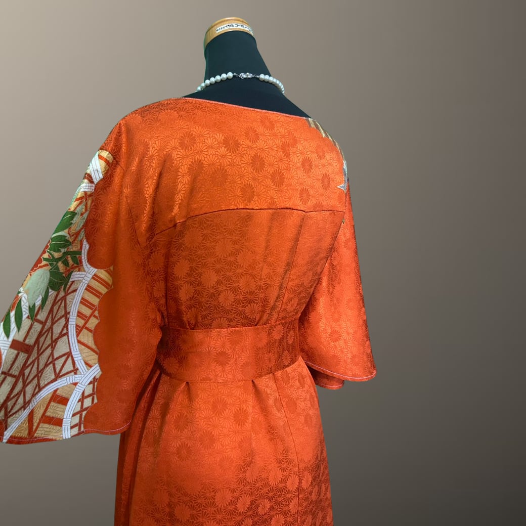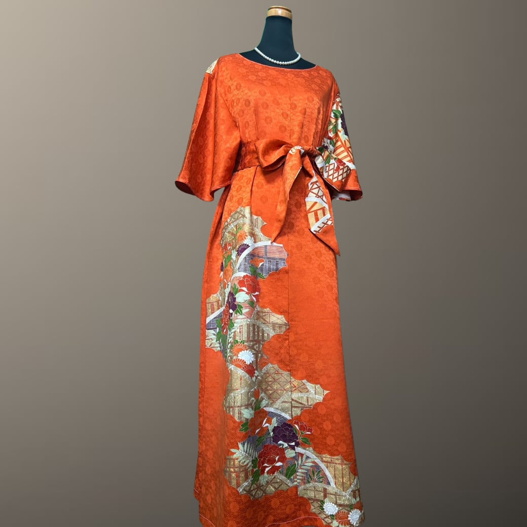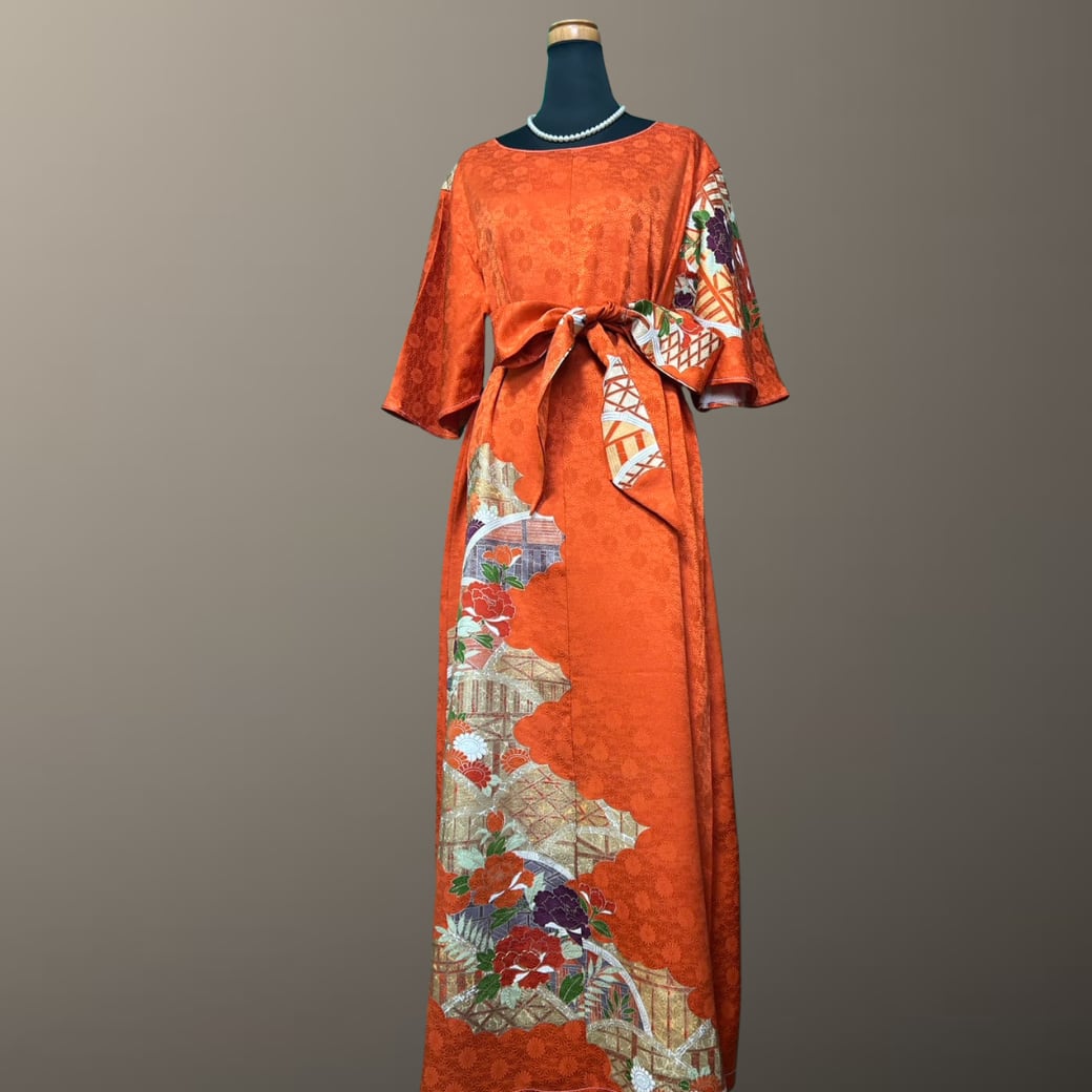 こちらは、格式ある訪問着から仕立てた着物ワンピースです。