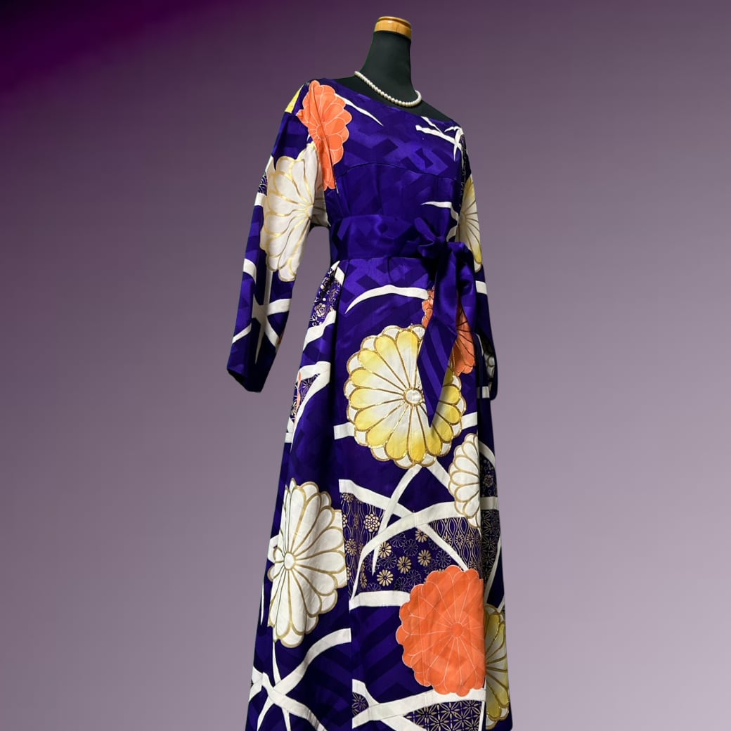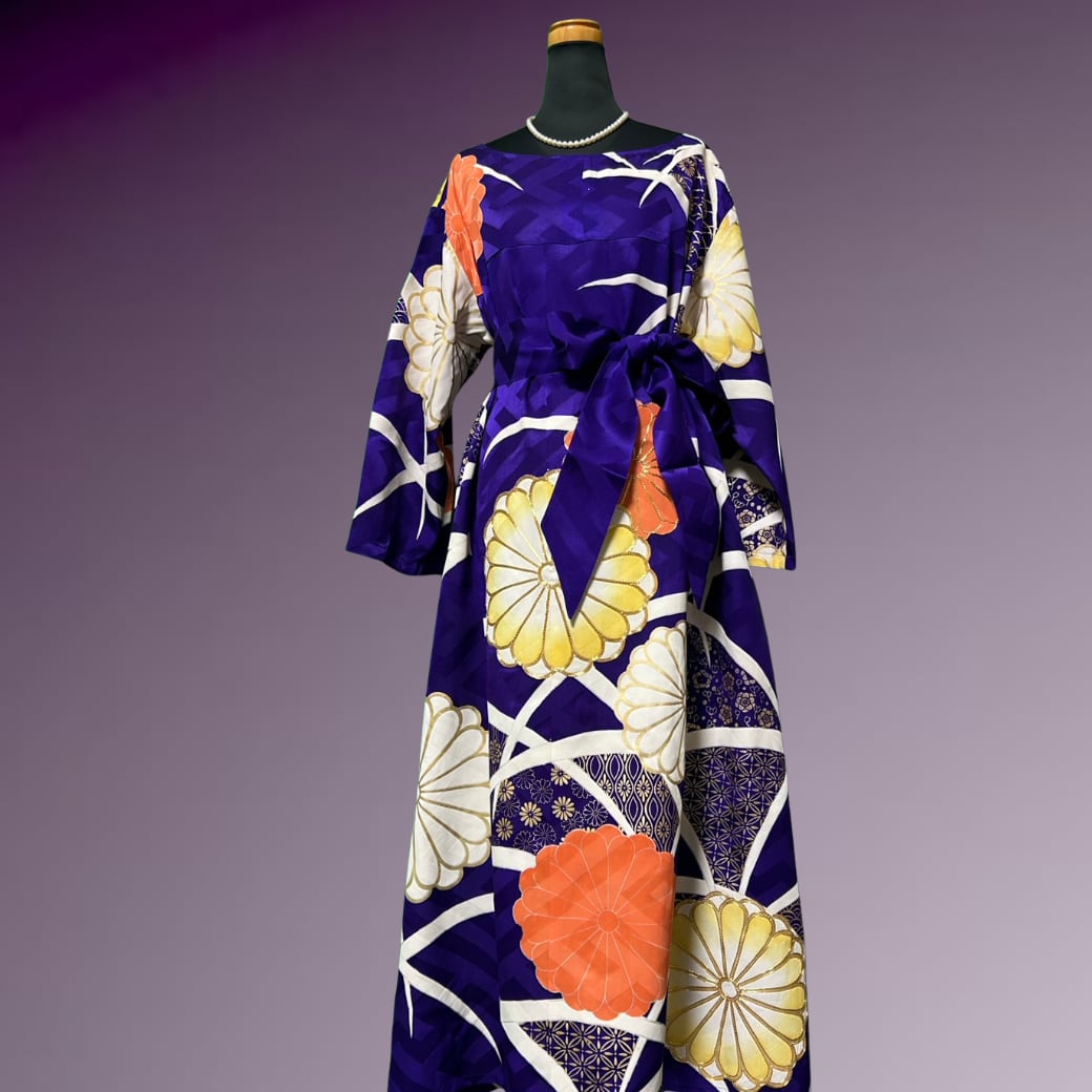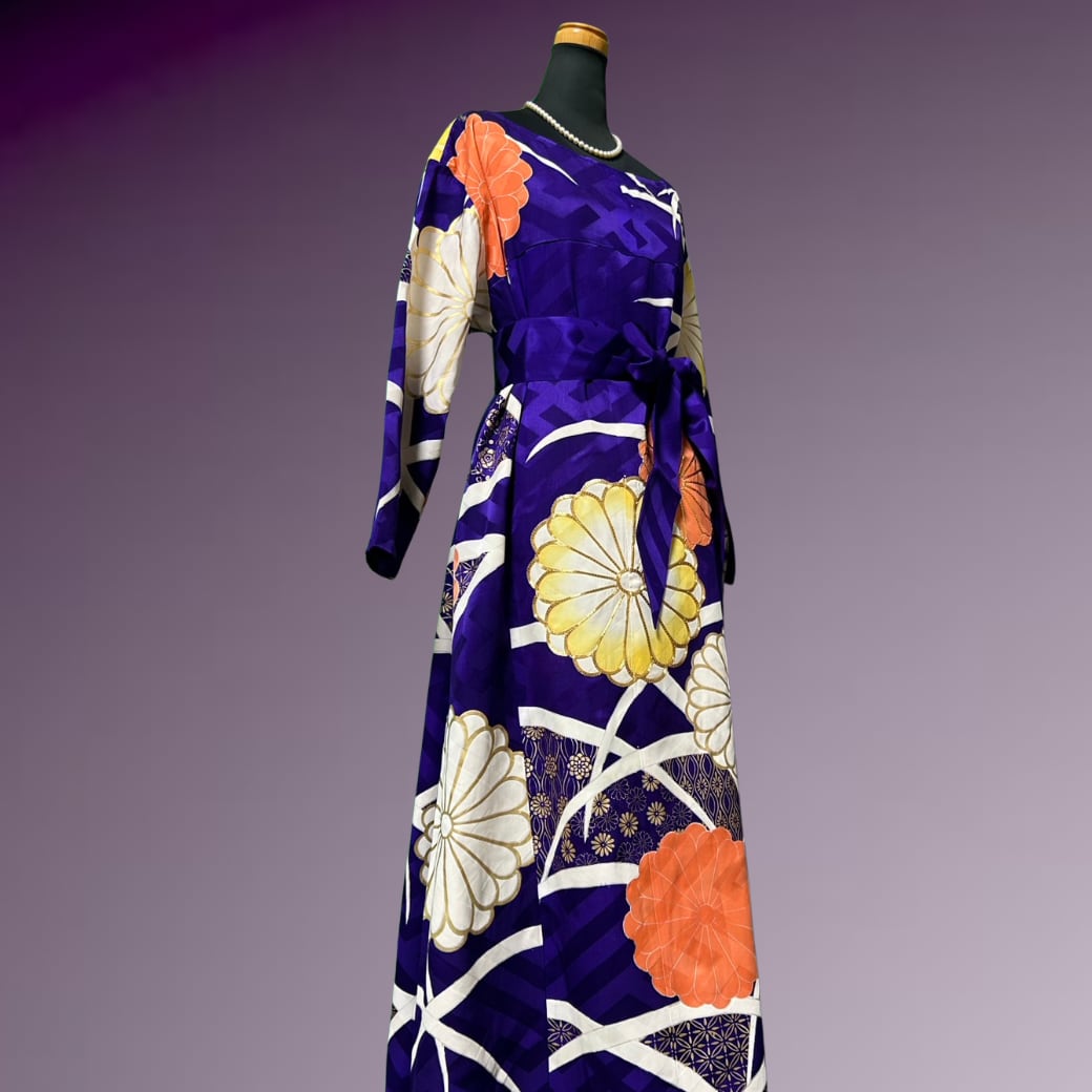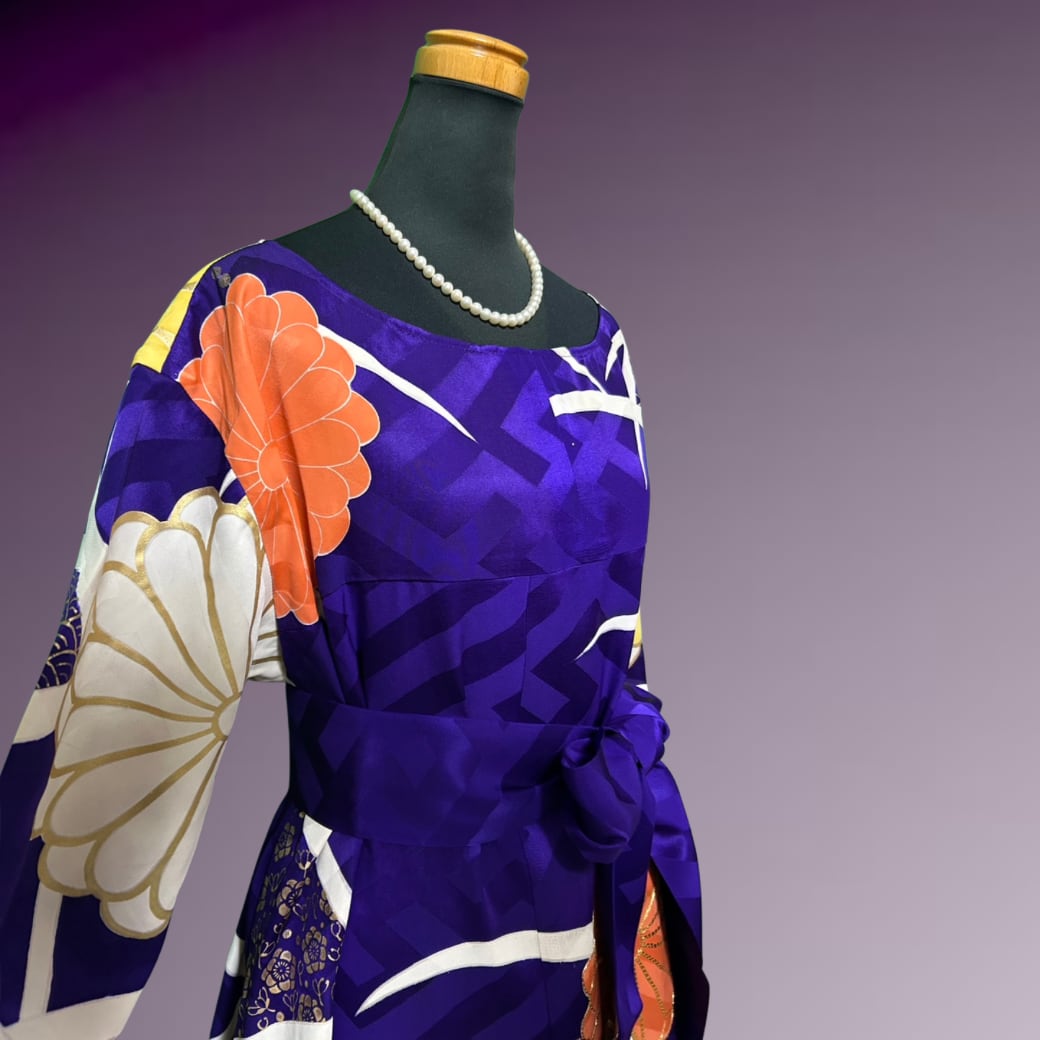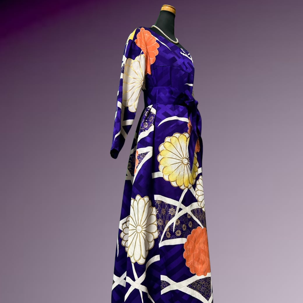 こちらの着物ワンピースには、華やぎの中に落ち着いた格が宿っています。