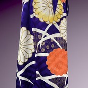 凛とした紫の地色に、白や橙の花々が美しく映え、