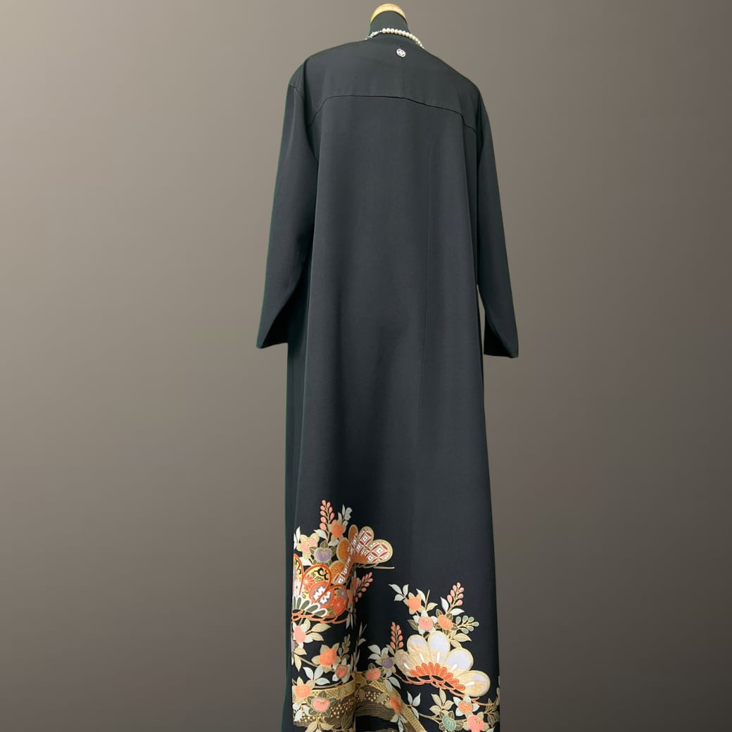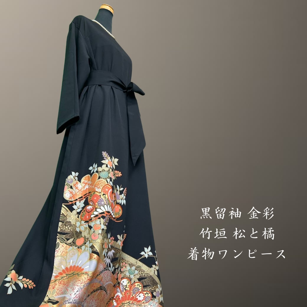 黒留袖 金彩 竹垣 松と橘 着物ワンピース