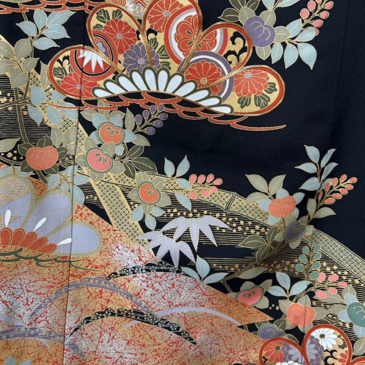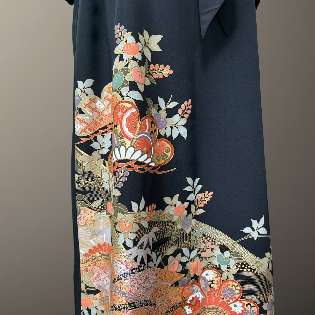 裾に向かって広がる優雅な柄ゆきが、黒留袖ならではの格と美しさを静かに引き立てます。