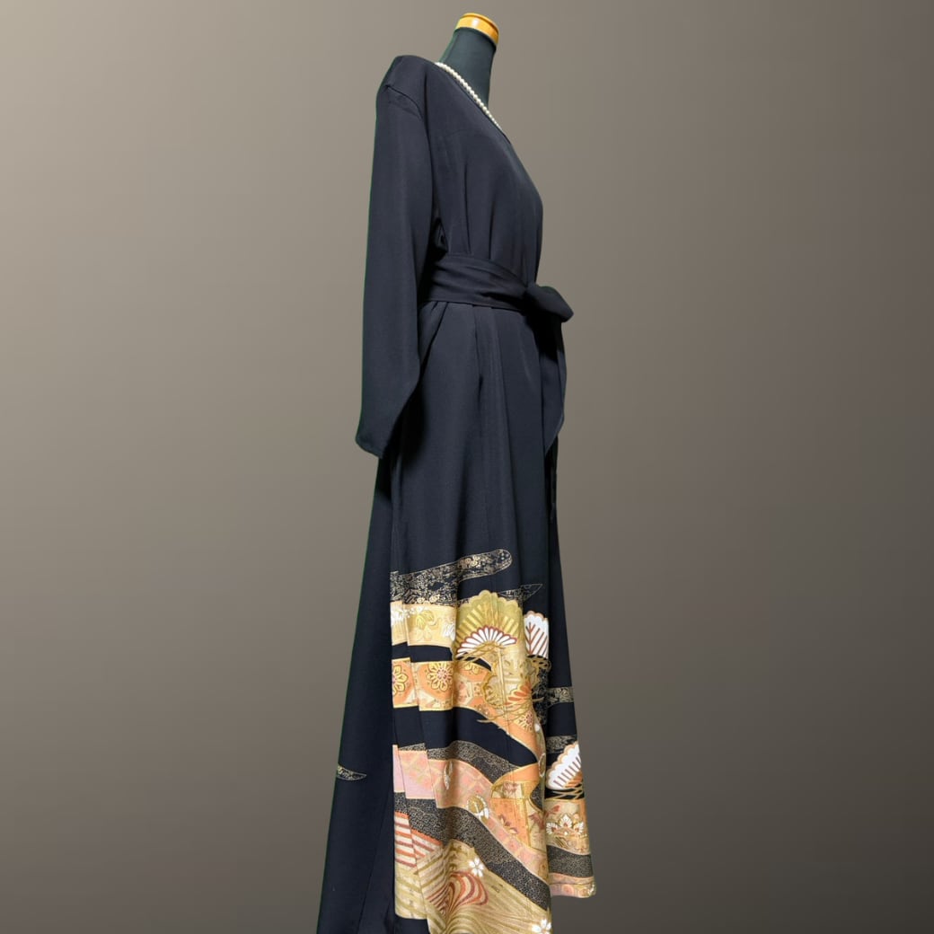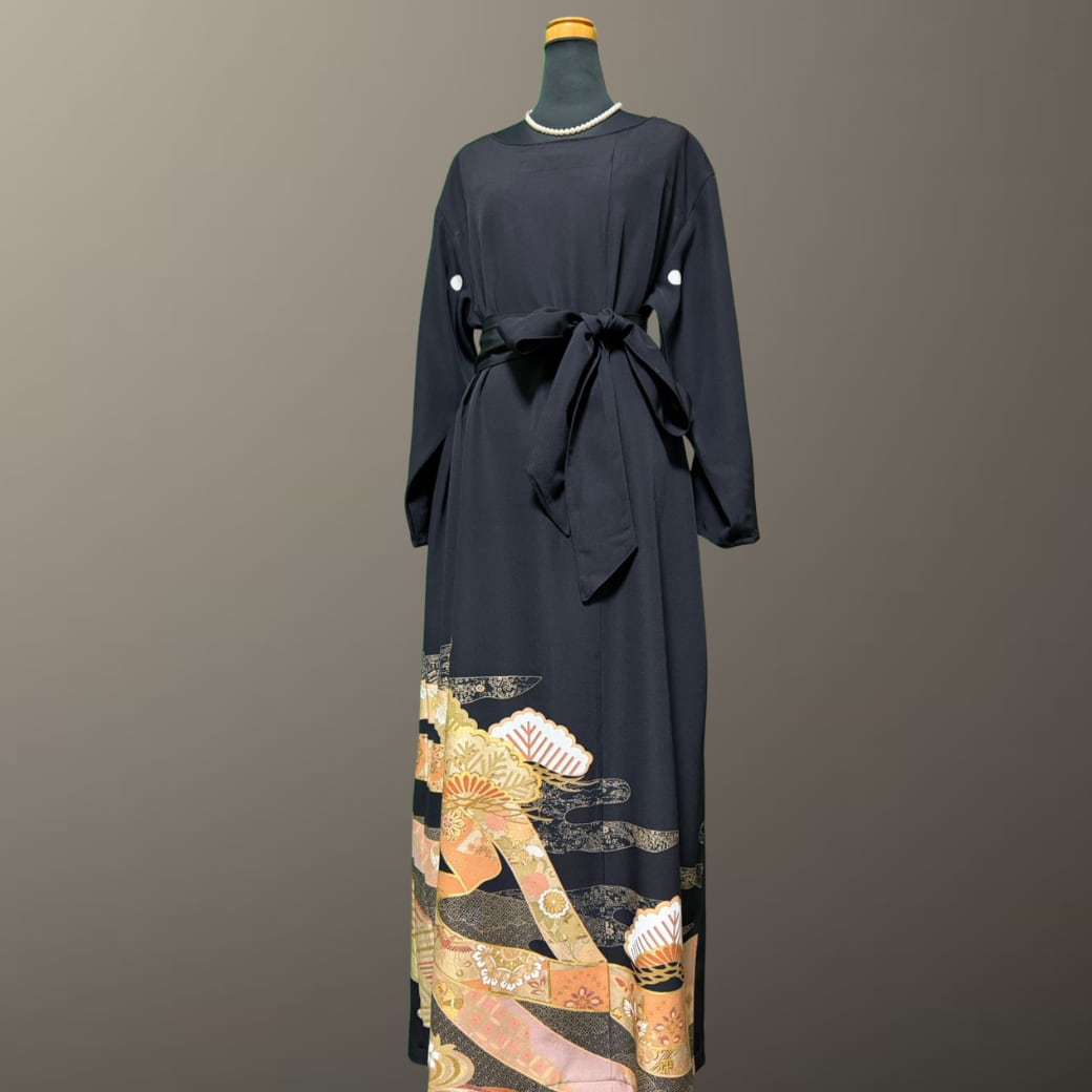 こちらの着物ワンピースは、黒留袖ならではの格式と、繊細な意匠が美しく調和した一着です。