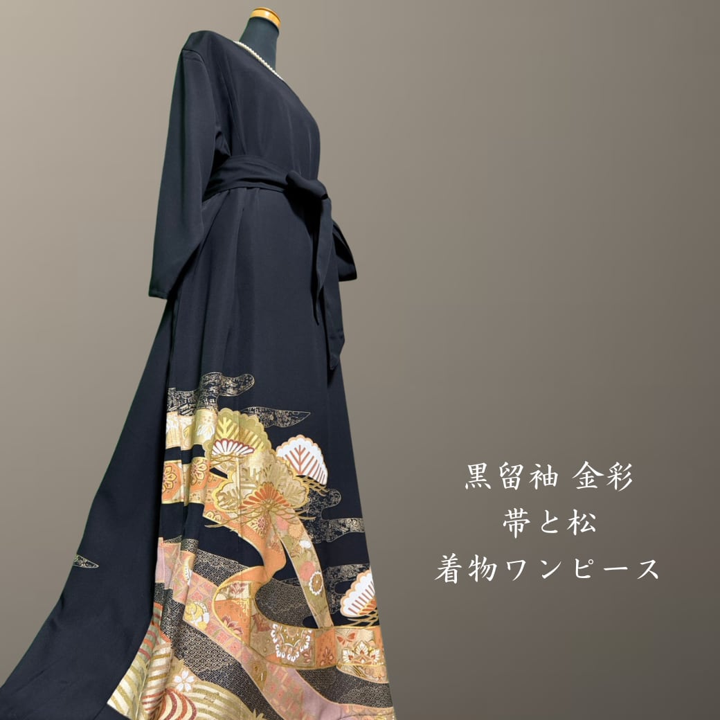 黒留袖 金彩 帯と松 着物ワンピース