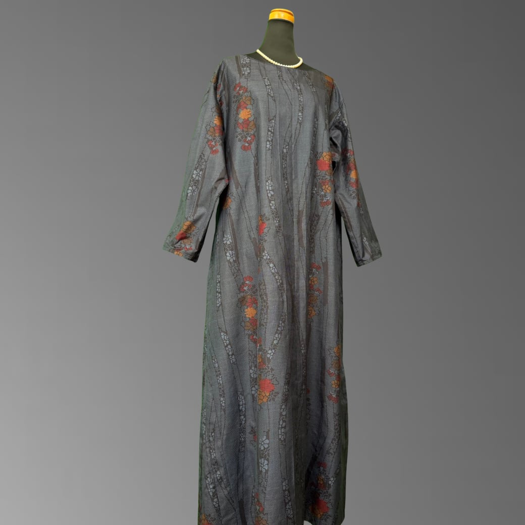 落ち着いた地色の中に、やさしく浮かび上がる花の彩りが、上品で穏やかな印象を与えます。