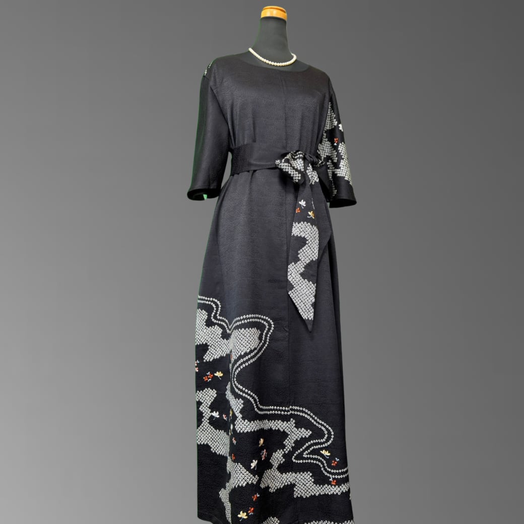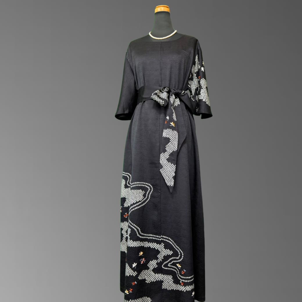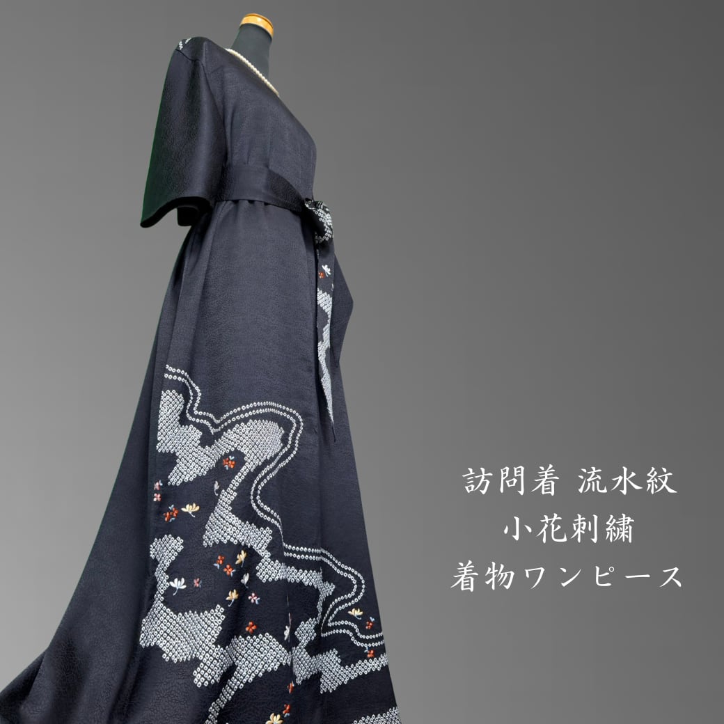 訪問着から生まれた、流水紋と小花刺繍の着物ワンピース。