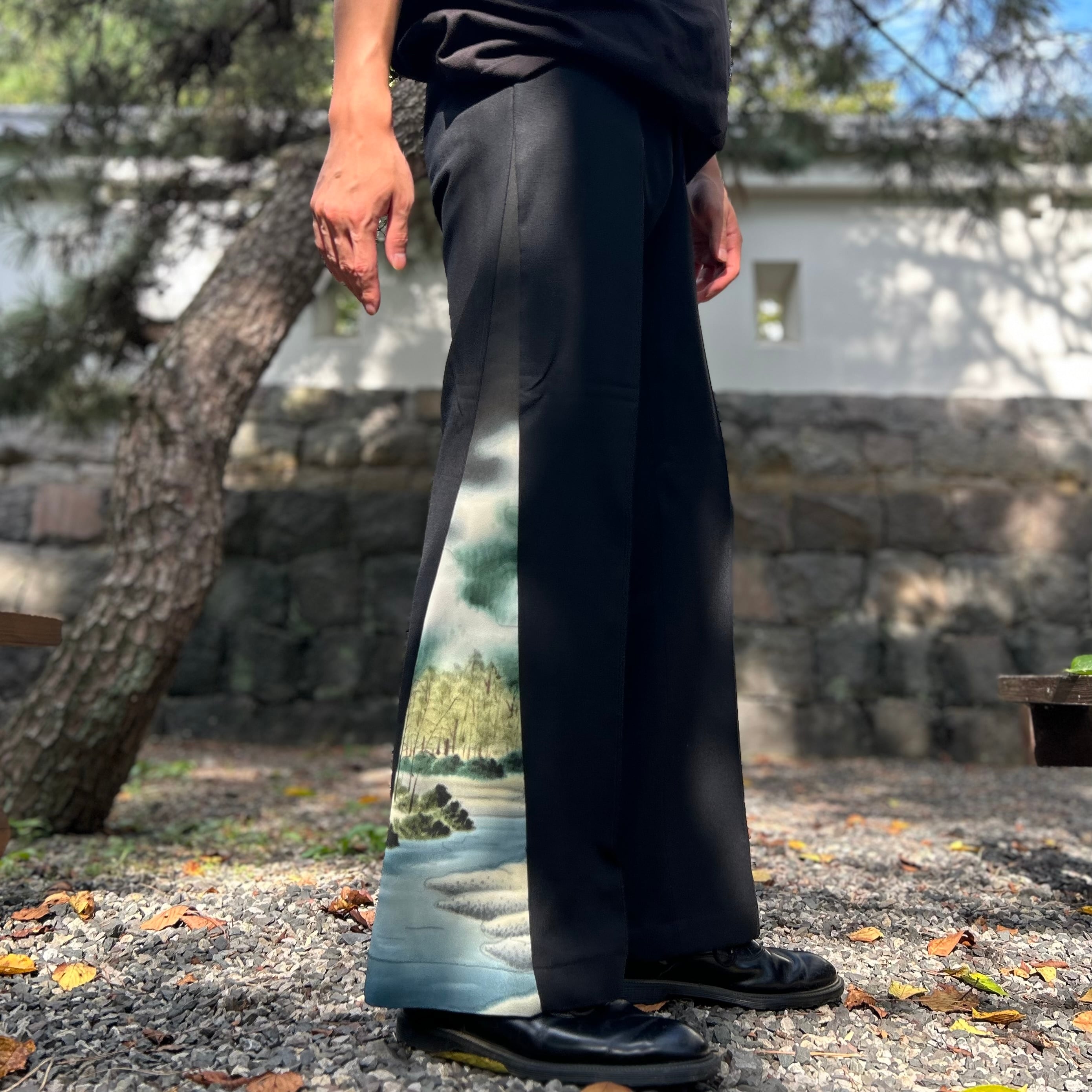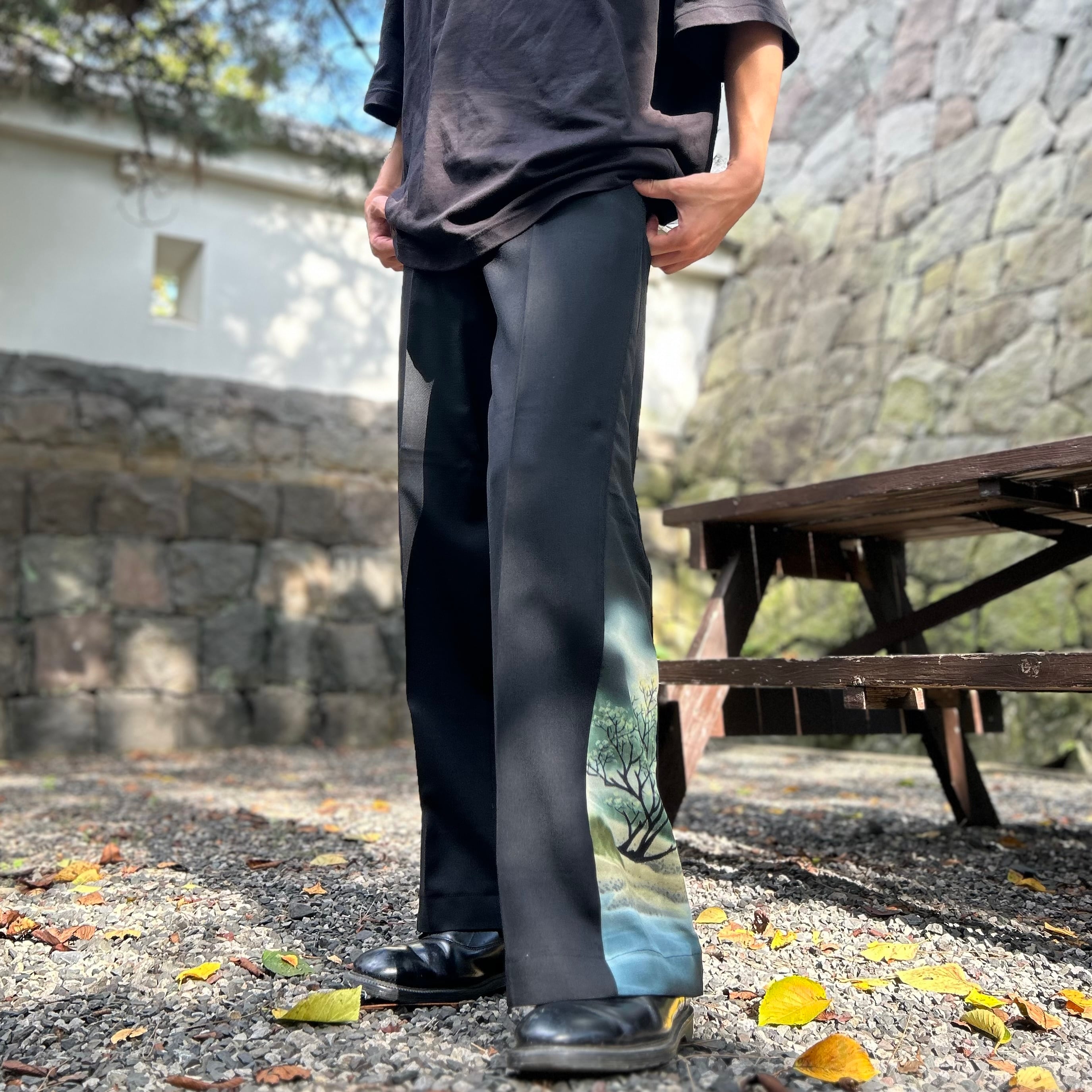 水墨柄の着物スラックス